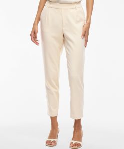 VILA Women’s Vivarone Slim Fit High Waisted Trousers | Sandshell
