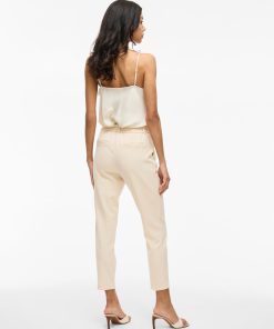 VILA Women’s Vivarone Slim Fit High Waisted Trousers | Sandshell