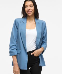 • 3/4-sleeved blazer• Wrinkled sleeves• Padded shoulders• Flap pockets• Notch lapels• Regular fit• Length: 71 cm in size 38• Sleeve length: 49 cm in size 38