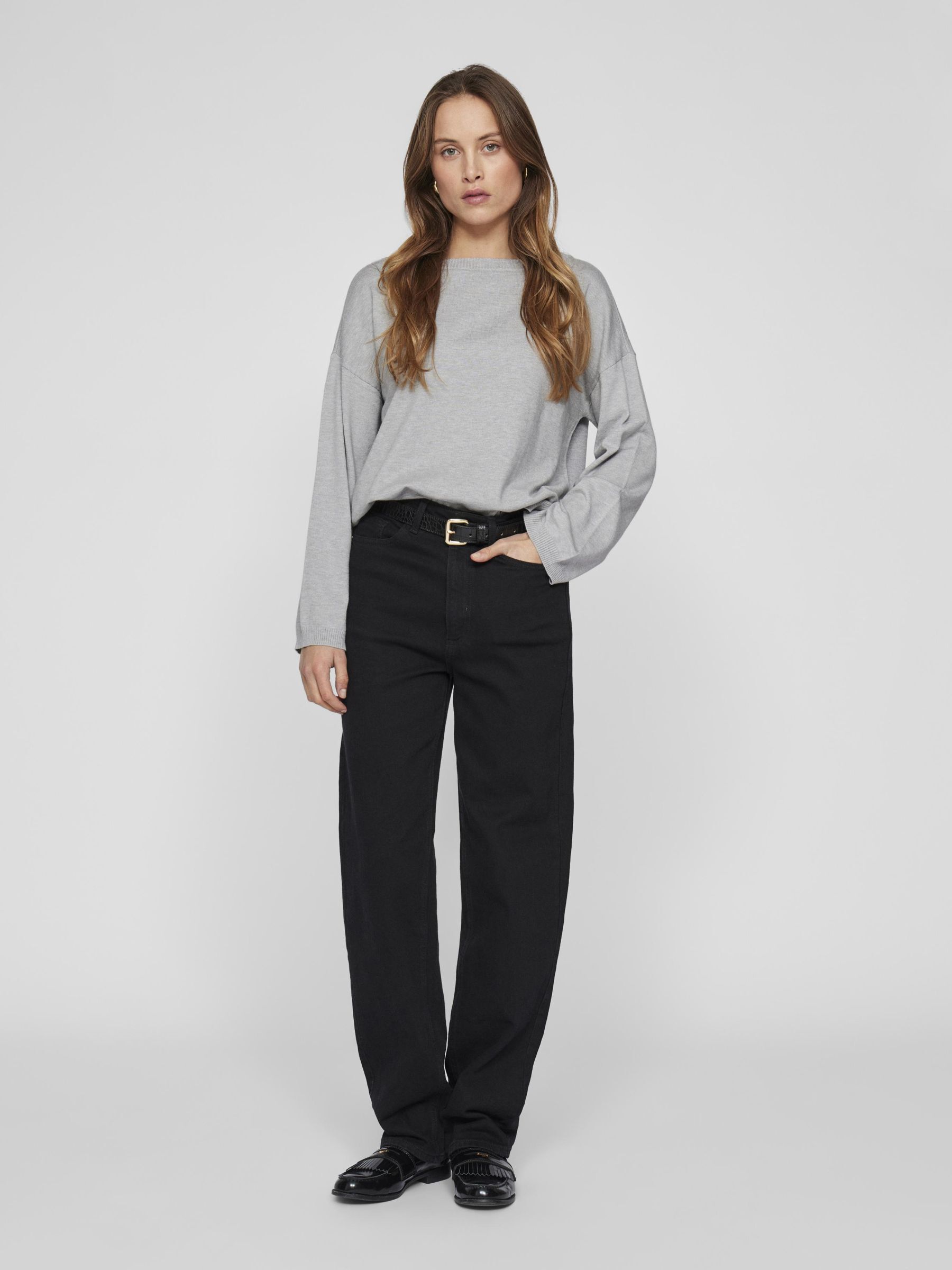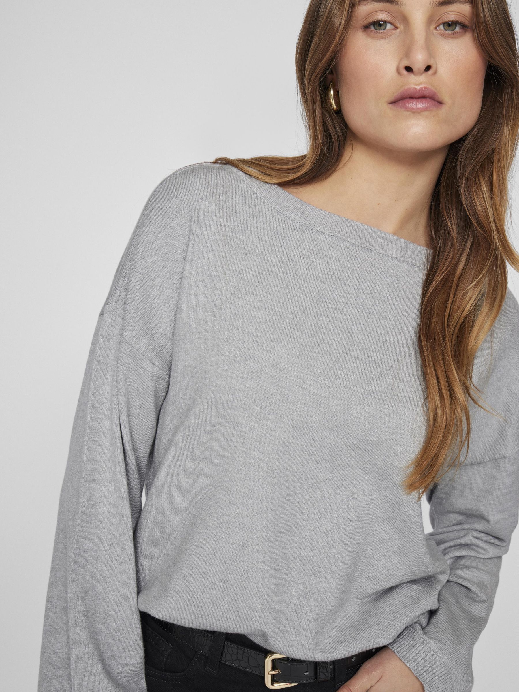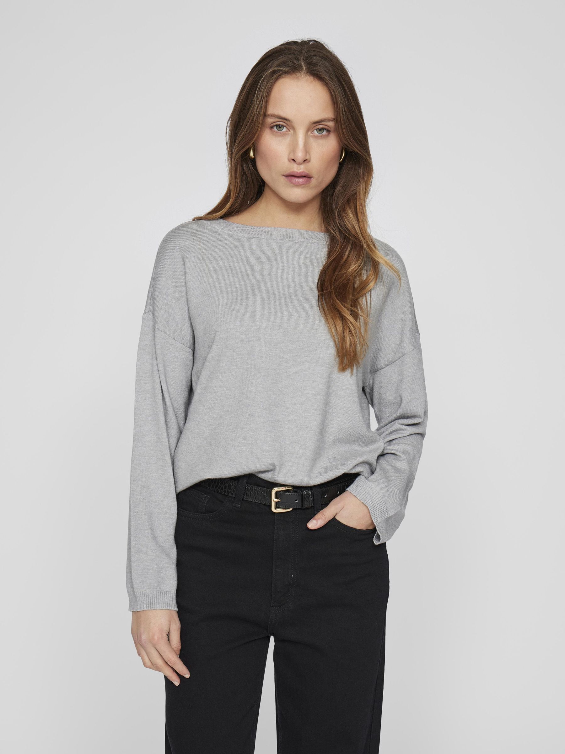 • Long sleeve knitted pullover• Boatneck• Dropped shoulders• Ribbed trims• Soft, stretchy knit• Regular fit• Length: 59 cm in size M• Sleeve length: 65 cm in size M