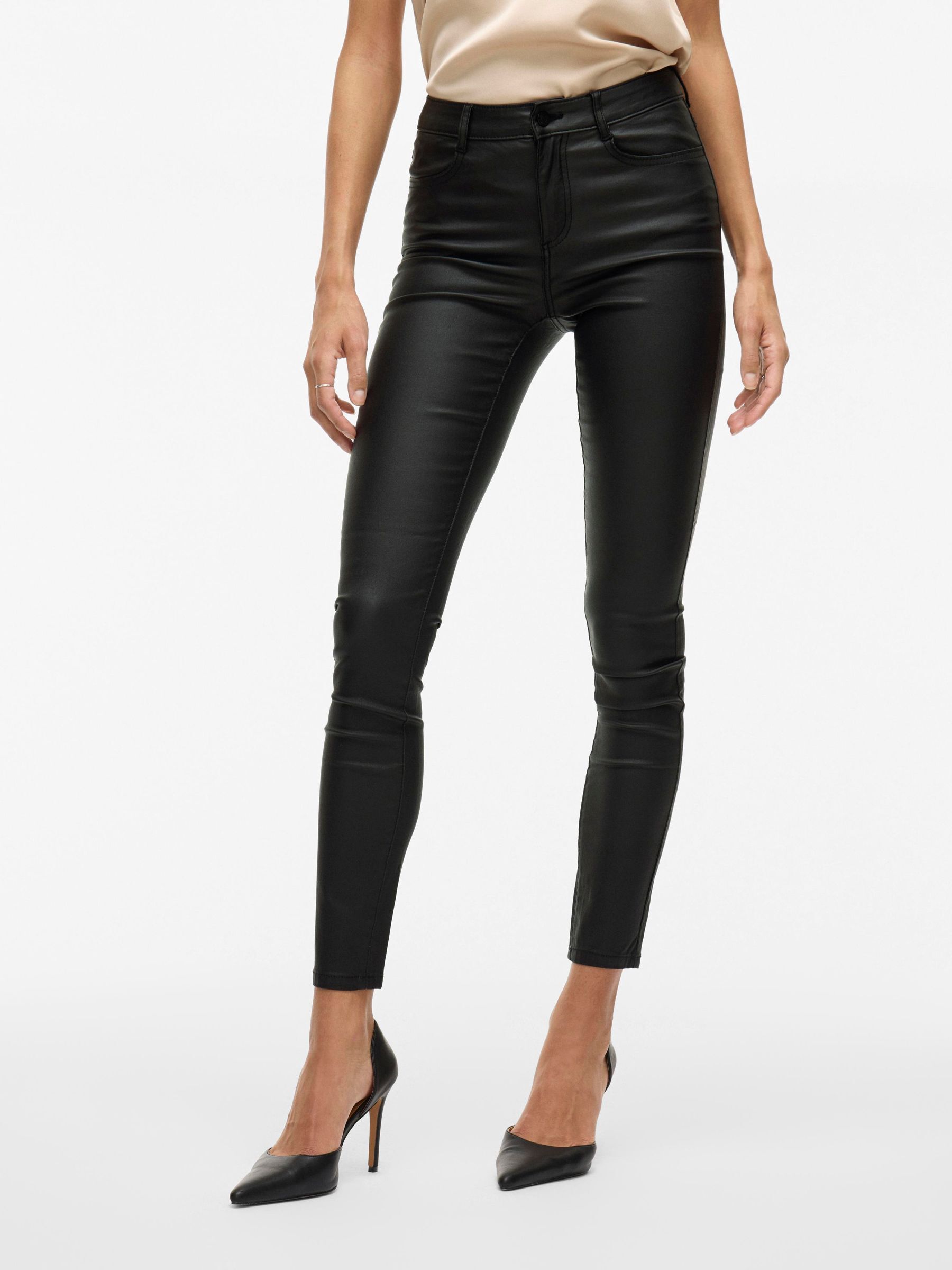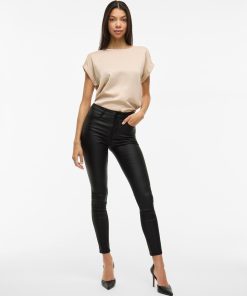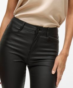 VILA Women’s Coated Trousers | Black Beauty