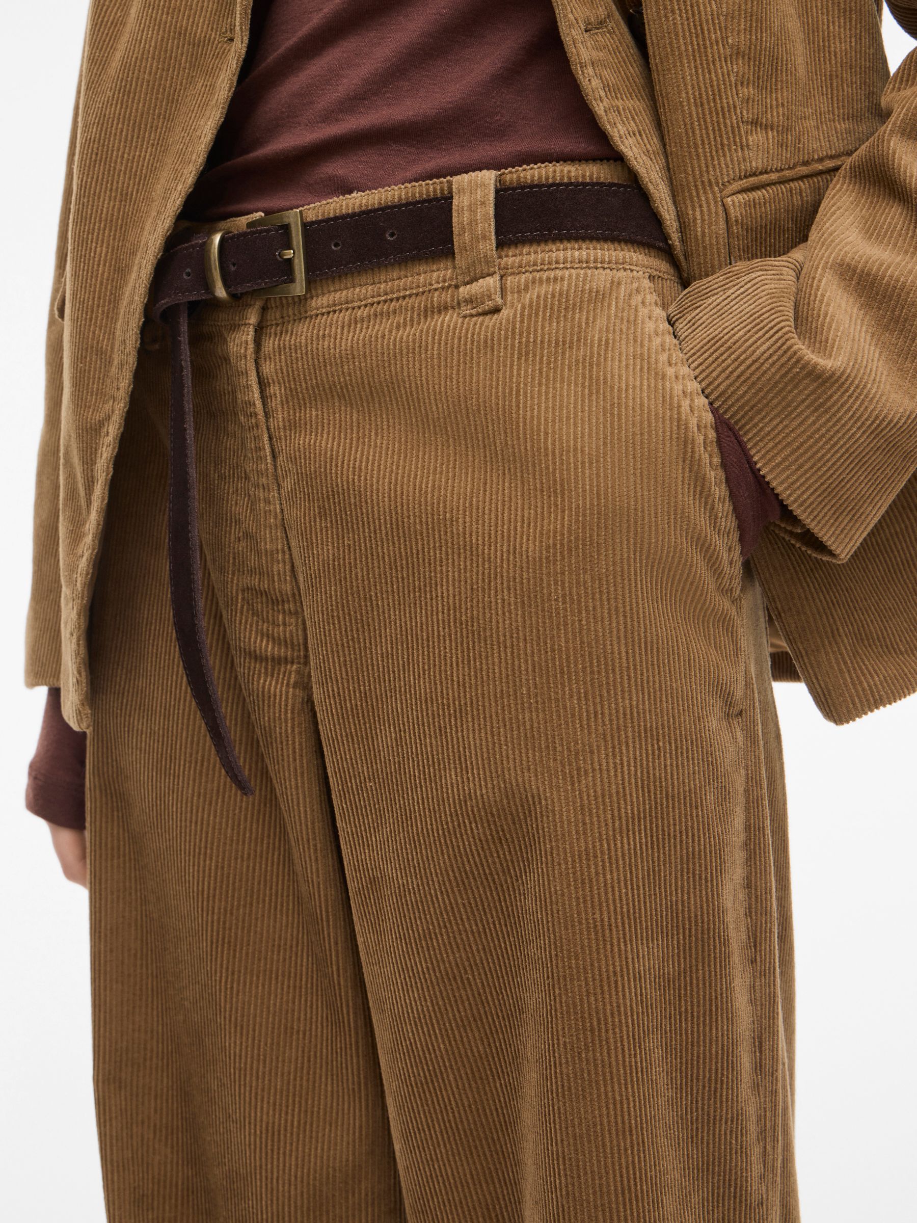 • Corduroy trousers• Mid-waist• Zip, button and clasp fastening• Side and back pockets• Belt loops• Wide-leg fit• Inseam: 81 cm in size 38• Frontrise: 28 cm in size 38