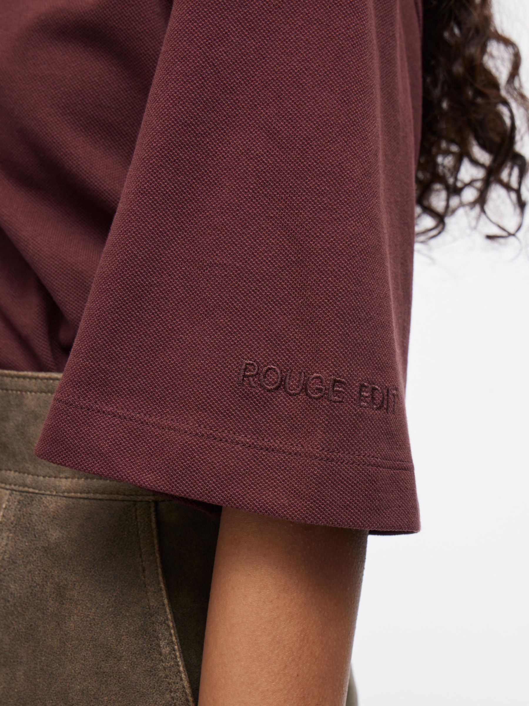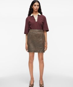 VILA Women’s Cotton Polo T-shirt | Decadent Chocolate