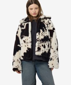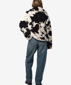 – Faux fur cow print coat- Large spread collar- Long sleeves- Button-up front- Side pockets- Fully lined- Regular fit- Model is 179cm tall and wearing size M