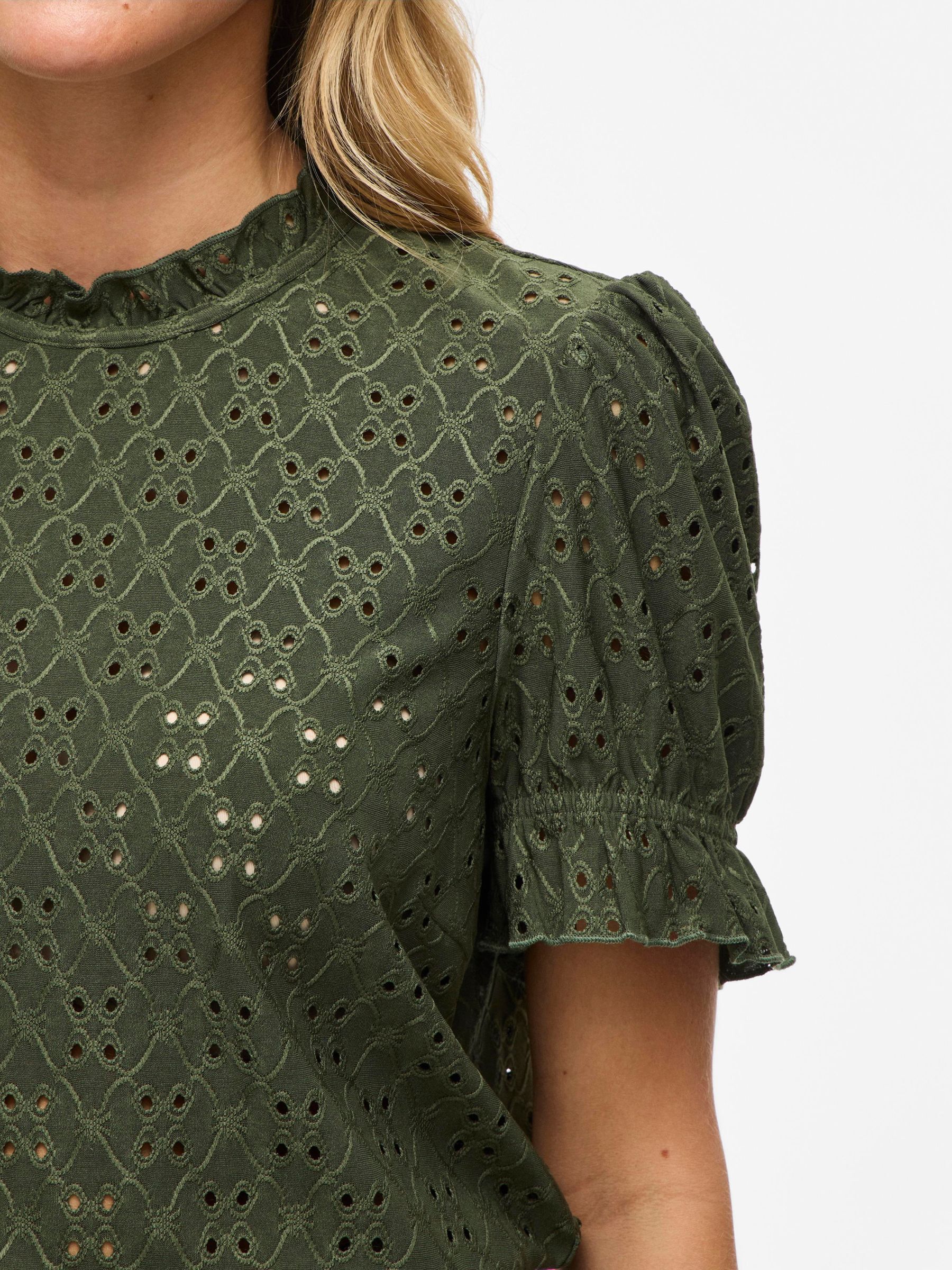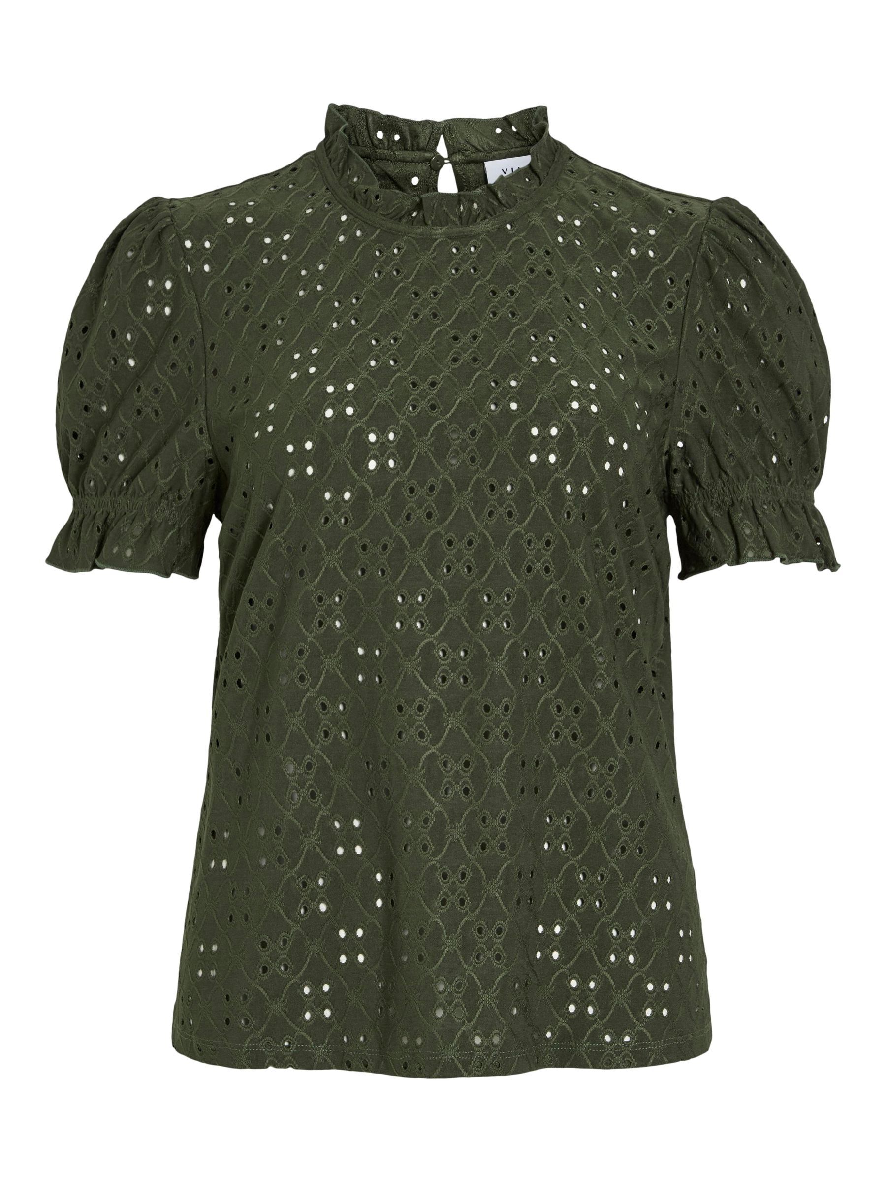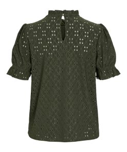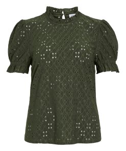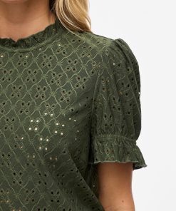 VILA Women’s Embroidered Short Sleeved Top | Deep Depths