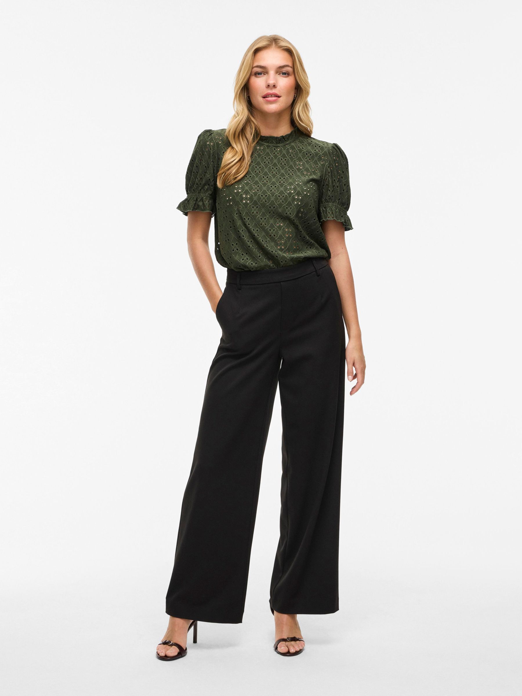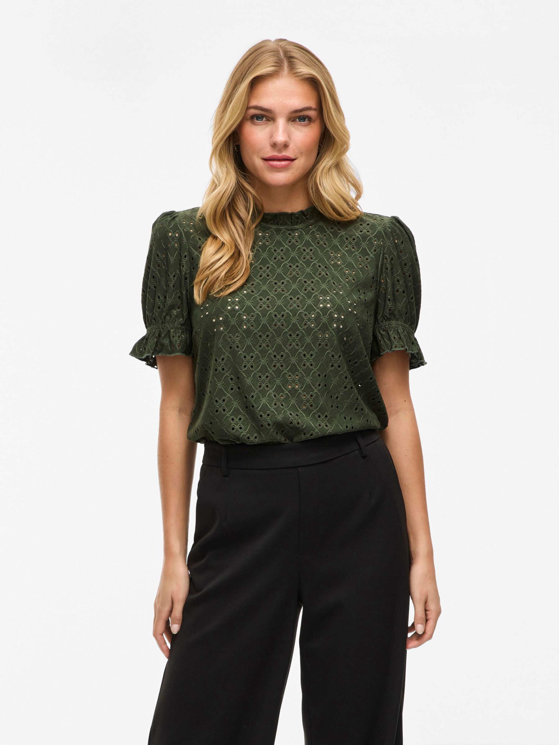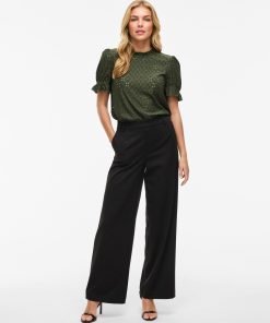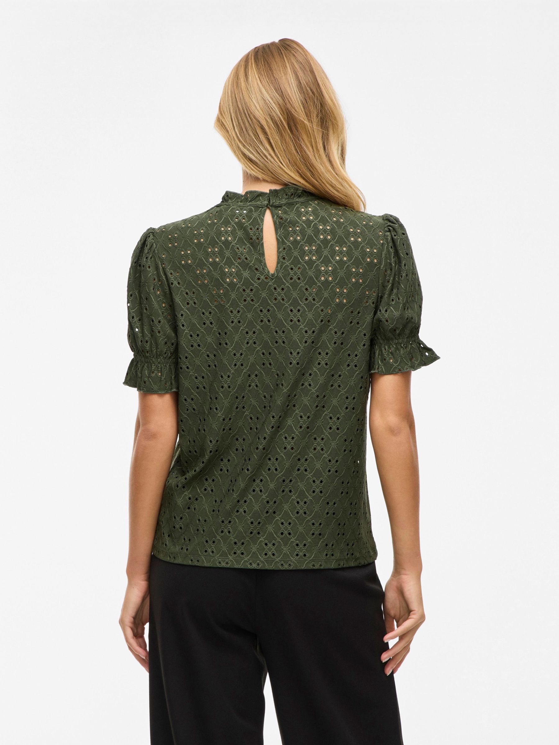 VILA Women’s Embroidered Short Sleeved Top | Deep Depths