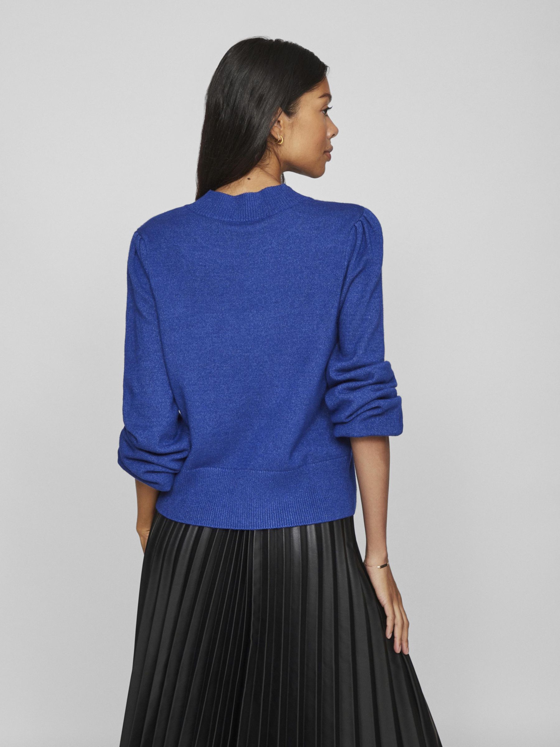 – Knitted jumper- High rib neck- Puff shoulders- Rid edges- Soft, stretchy knit- Regular fit- Length: 56 cm in size M- Sleeve length: 65 cm in size M- Our model is 180 cm tall and wears size M