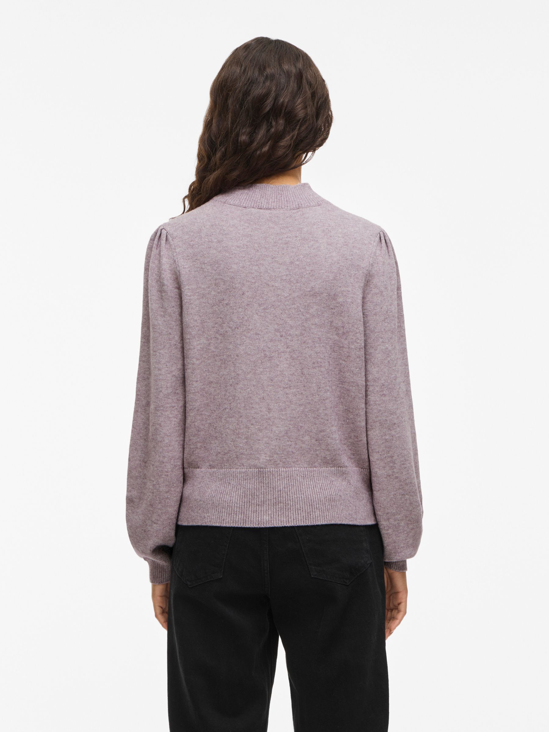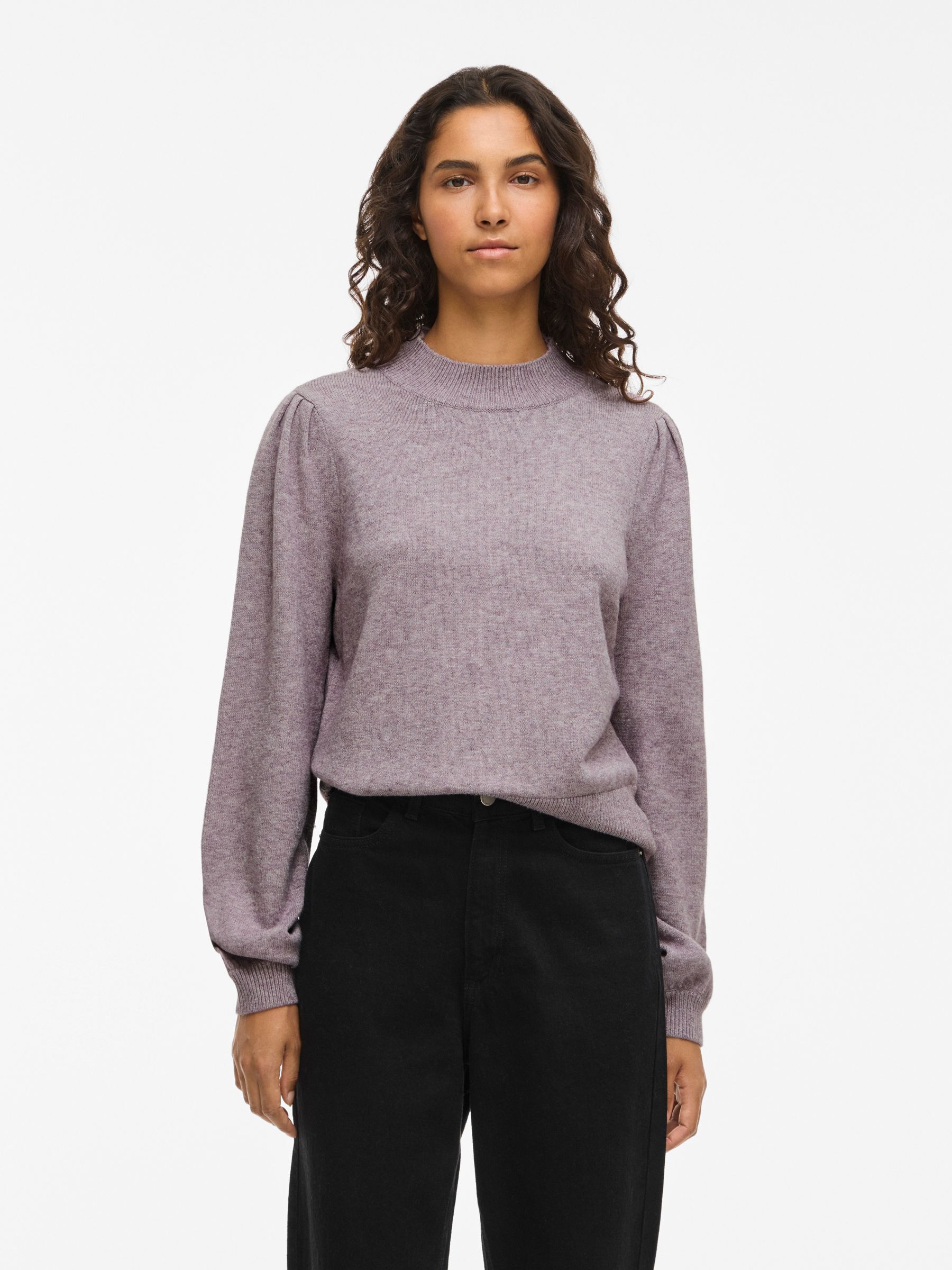 – Knitted jumper- High rib neck- Puff shoulders- Rid edges- Soft, stretchy knit- Regular fit- Length: 56 cm in size M- Sleeve length: 65 cm in size M- Our model is 180 cm tall and wears size M