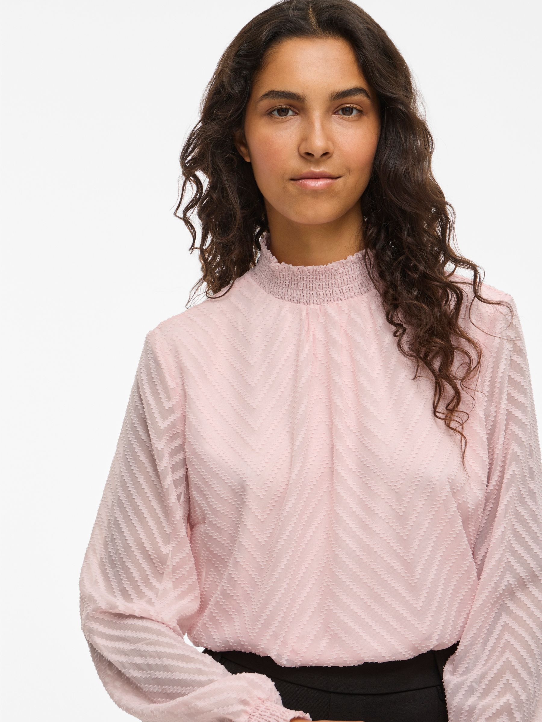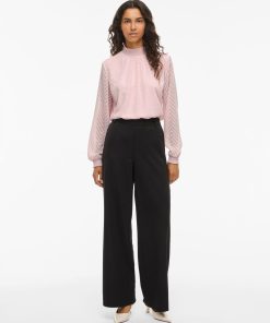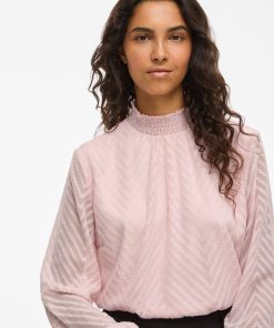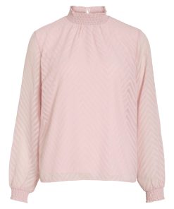 VILA Women’s High Neck Long Sleeved Blouse | Misty Rose