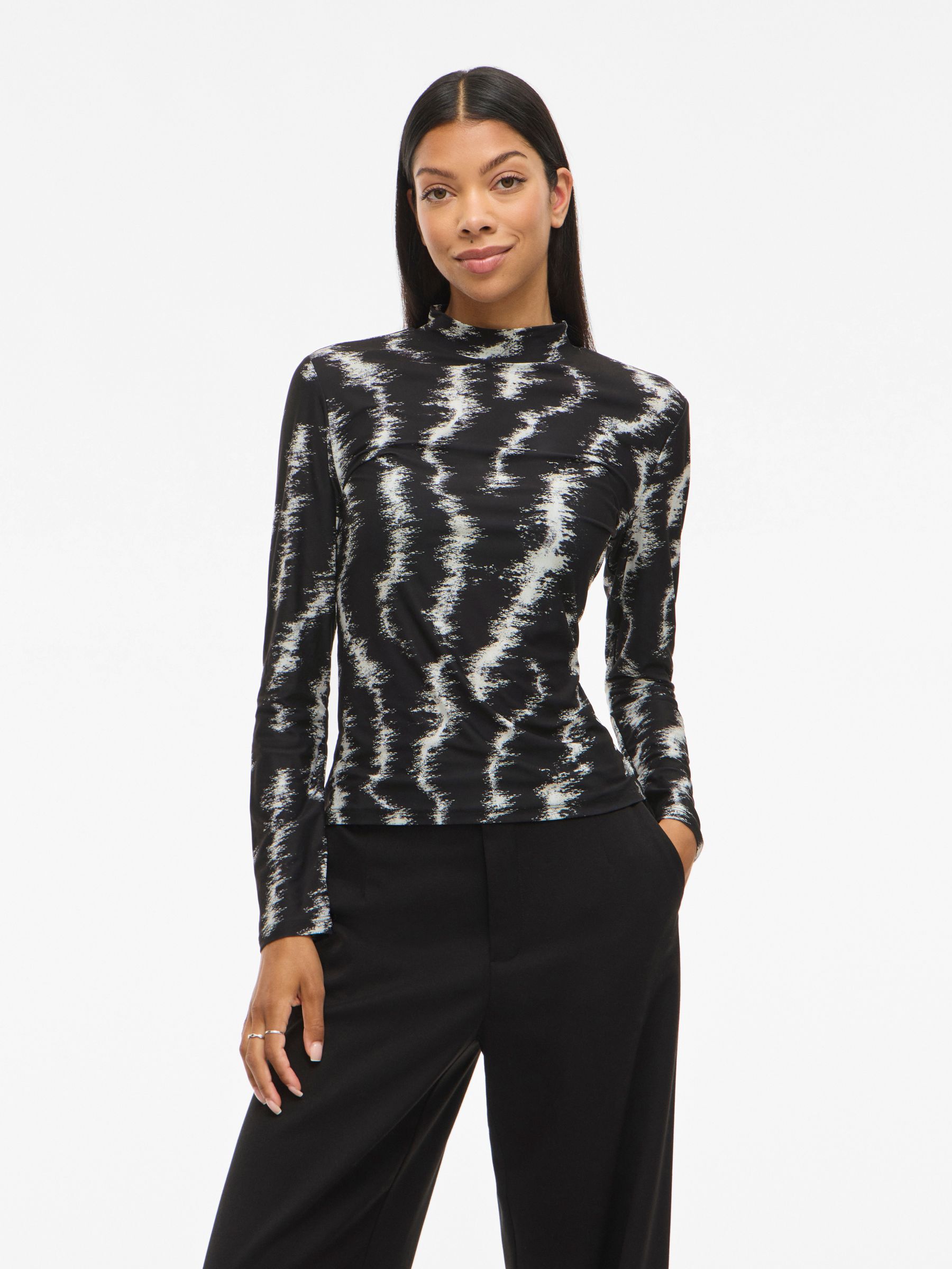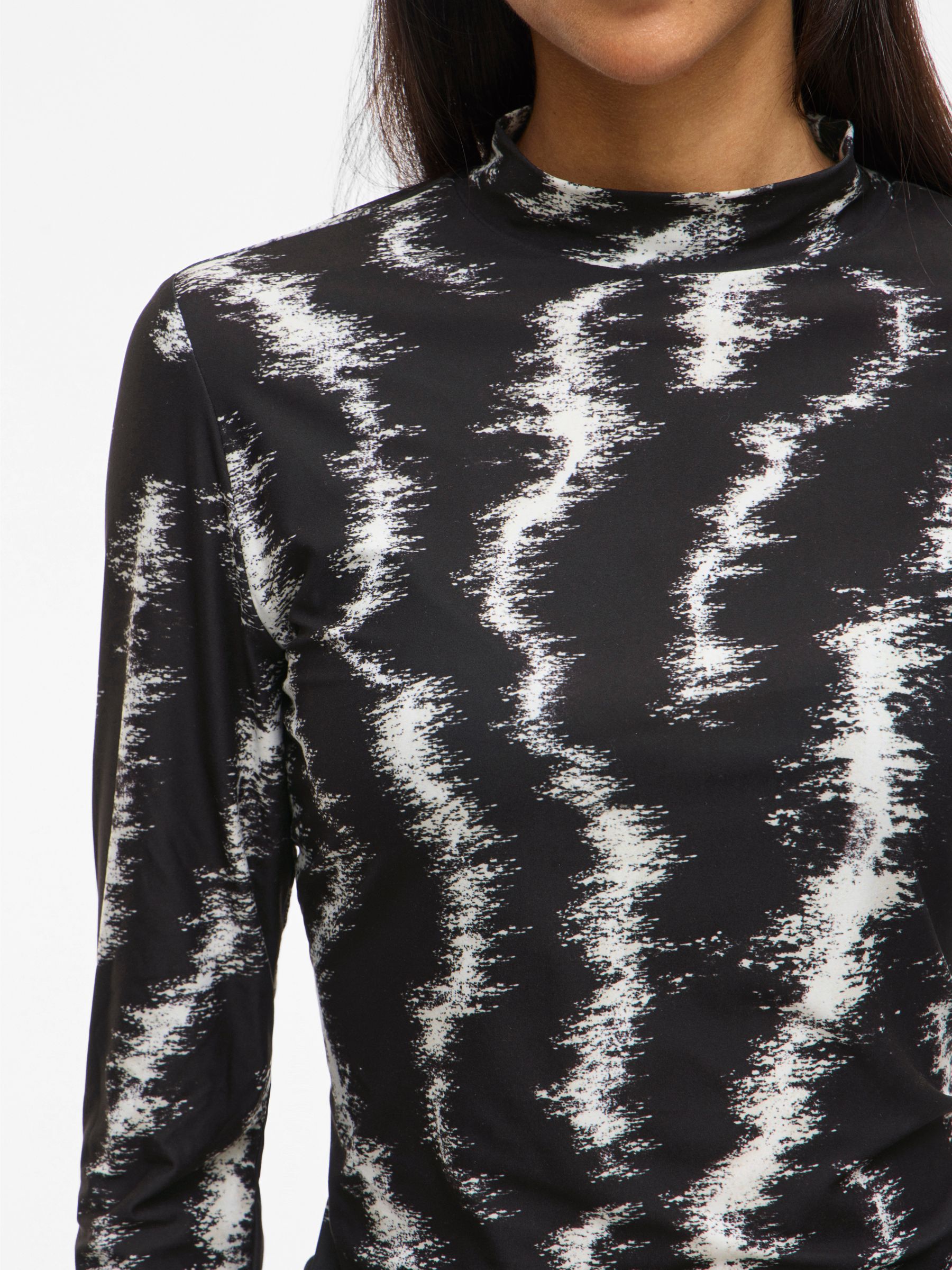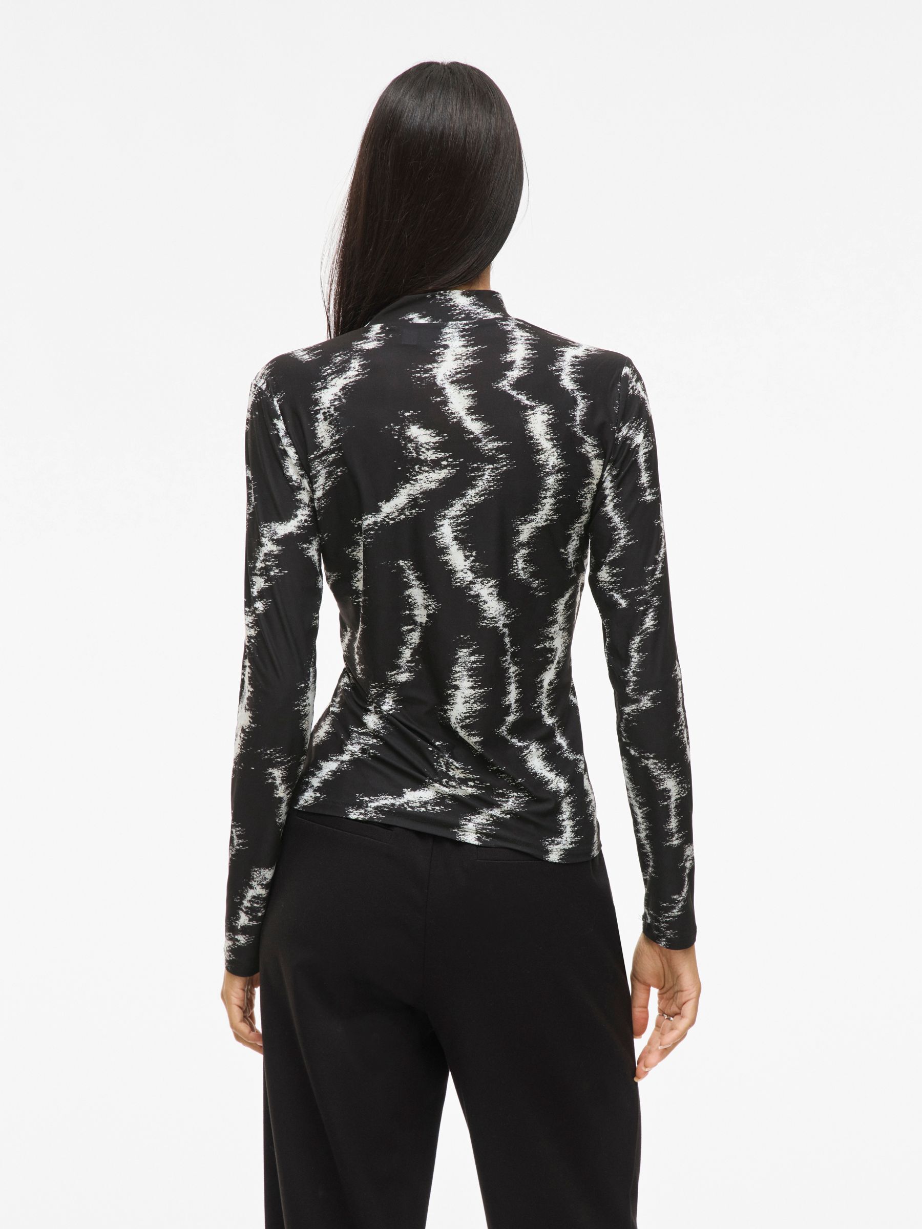 – High neck, long sleeve top- Light, stretchy material- Basic top – Length: 60 cm in size 38 – Sleeve length: 62 cm in size 38- Our model is 178 cm tall and wears size 38