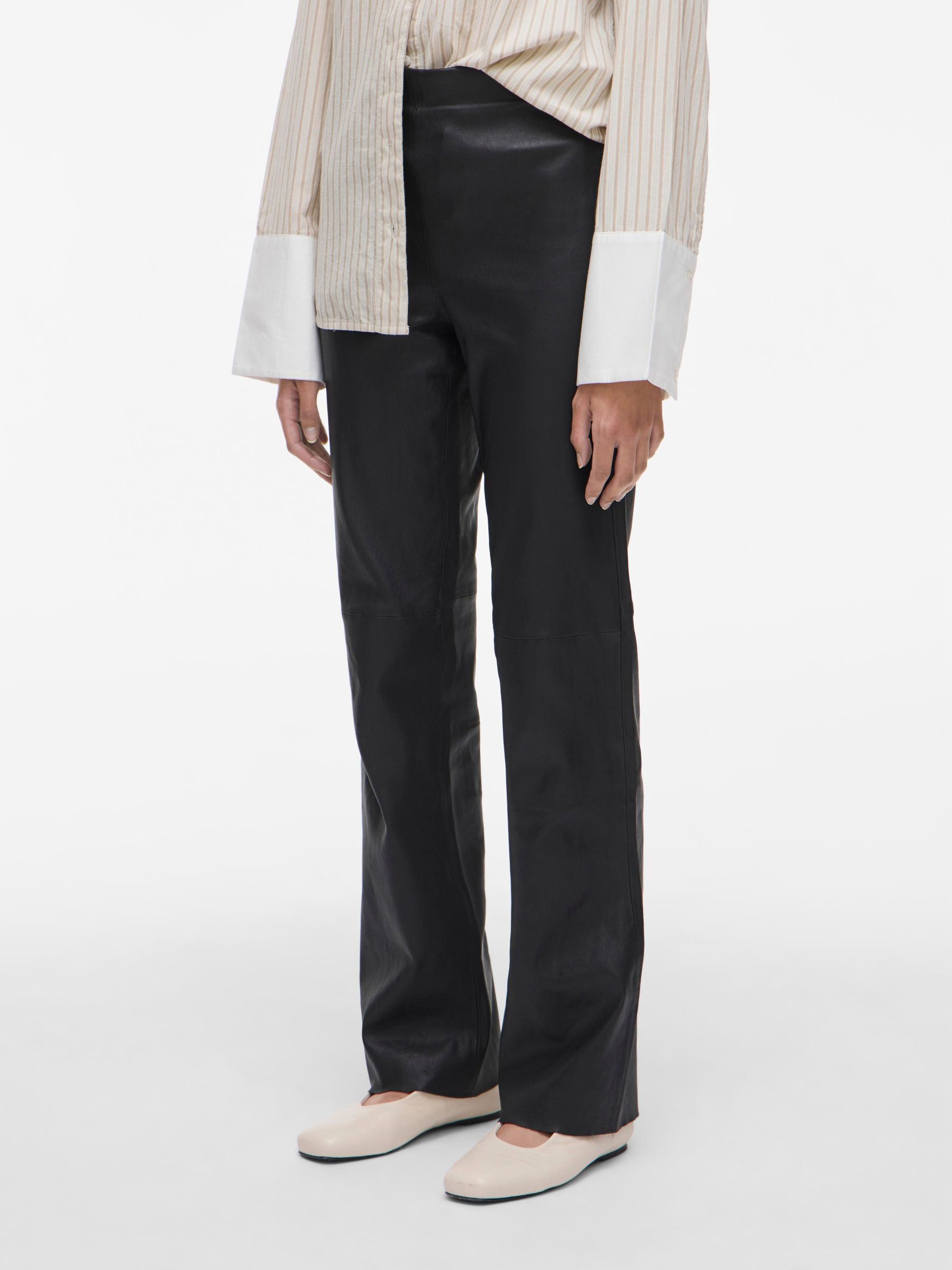 • Straight leather trousers• High waist• Side zip fastening• Regular fit• Inseam: 82 cm in size 38• Frontrise: 27 cm in size 38