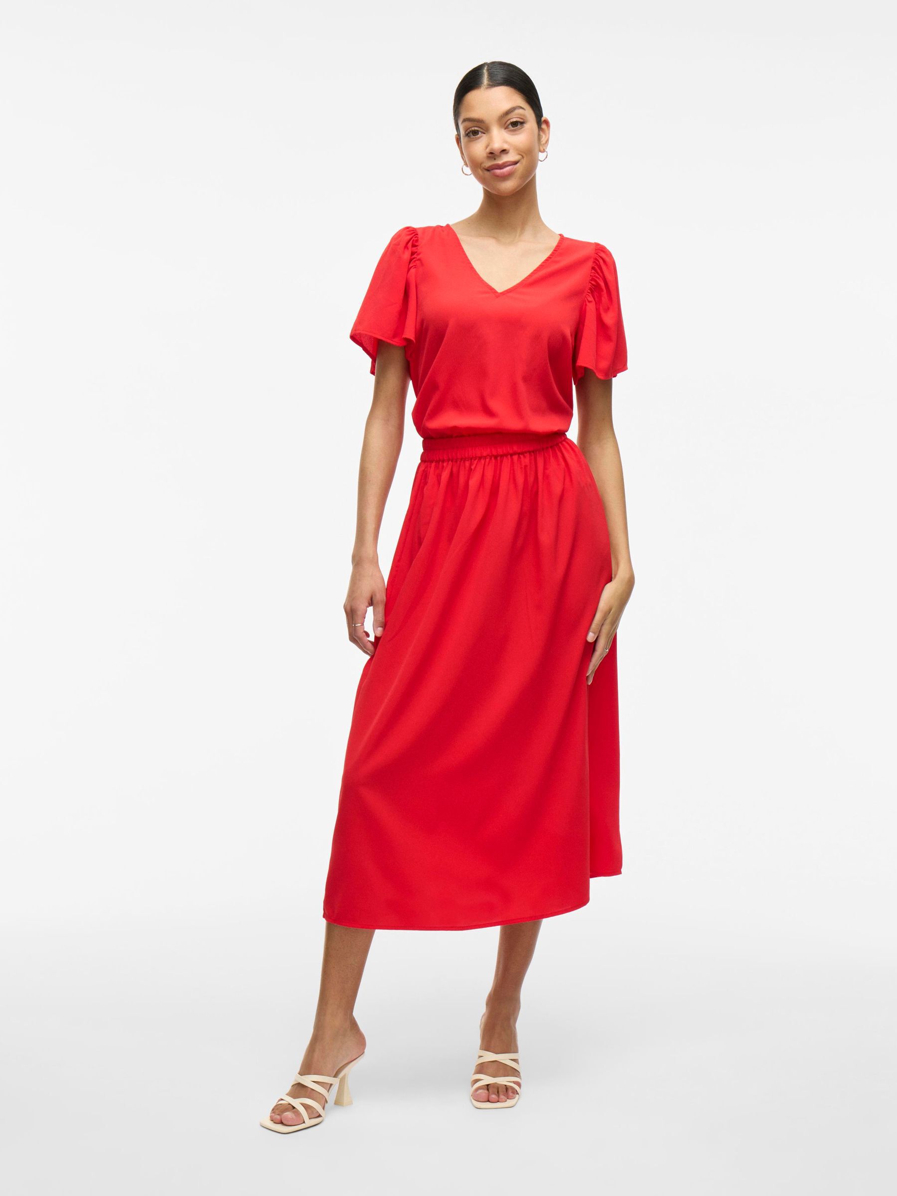 • High waist midi skirt• Elastic waistband• Light fabric• Regular fit• Length: 85 cm in size 38