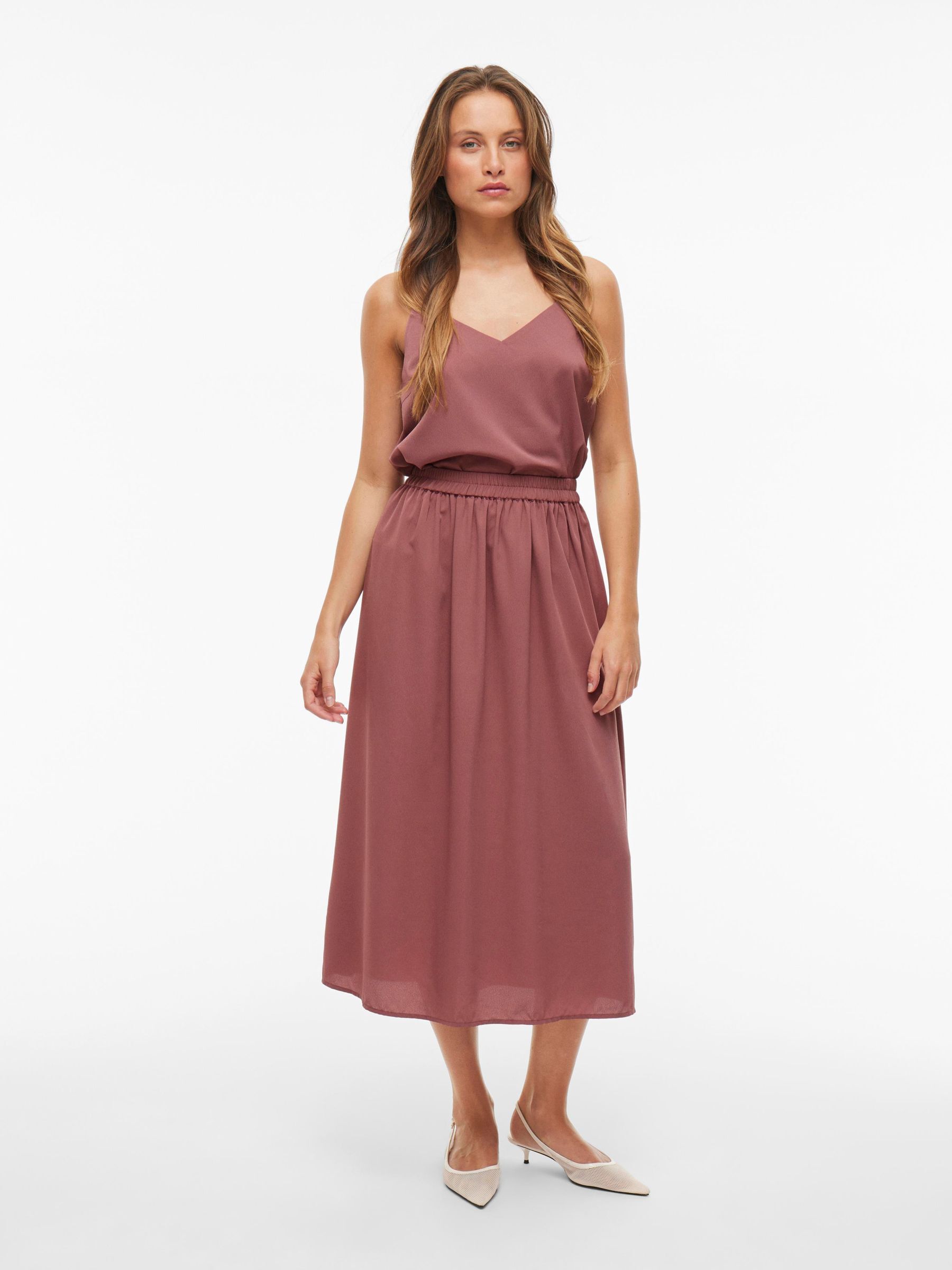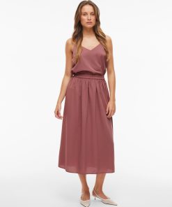 VILA Women’s High Waist Midi Skirt | Rose Brown