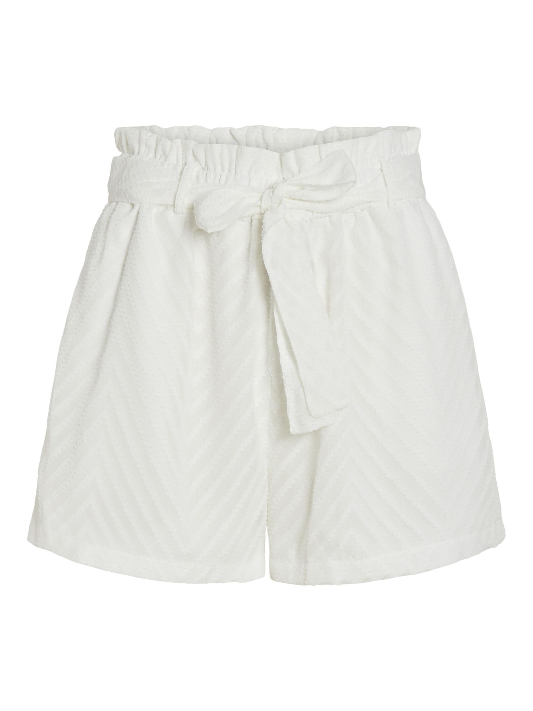 • High waist shorts• Textured fabric• Tie waist with removable belt• Belt loops• Side pockets• Elastic waistband• Regular fit• Inseam: 7.5 cm in size 38• Frontrise: 32 cm in size 38