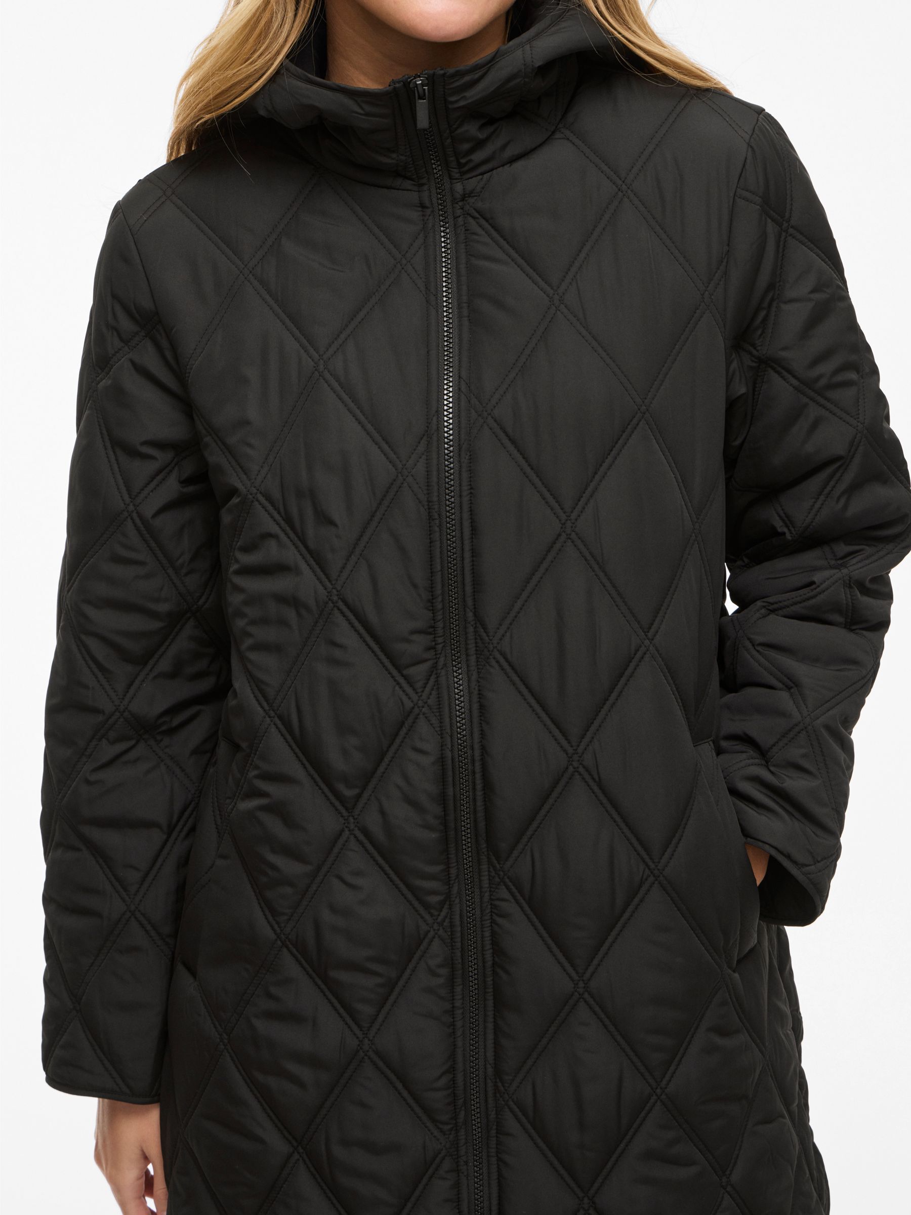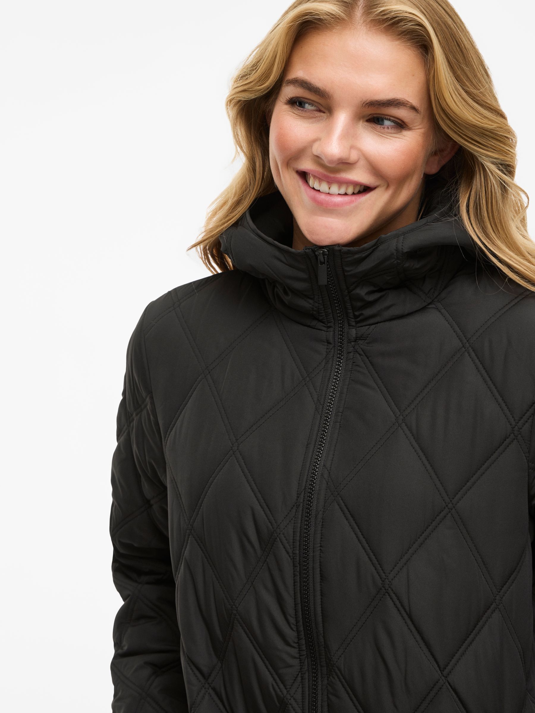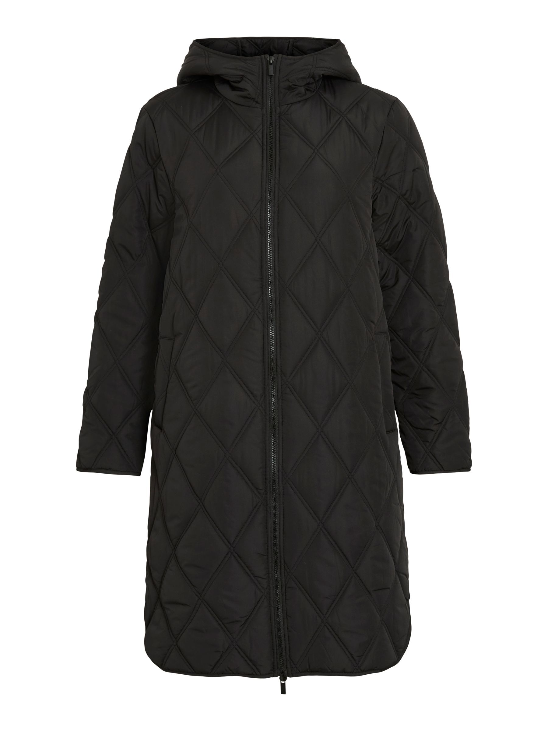 • Quilted coat with hood• Front zipper closure• Zipper open from top and bottom• Open front pockets• Regular fit• Length: 100 cm in size 38• Sleeve length: 62 cm in size 38