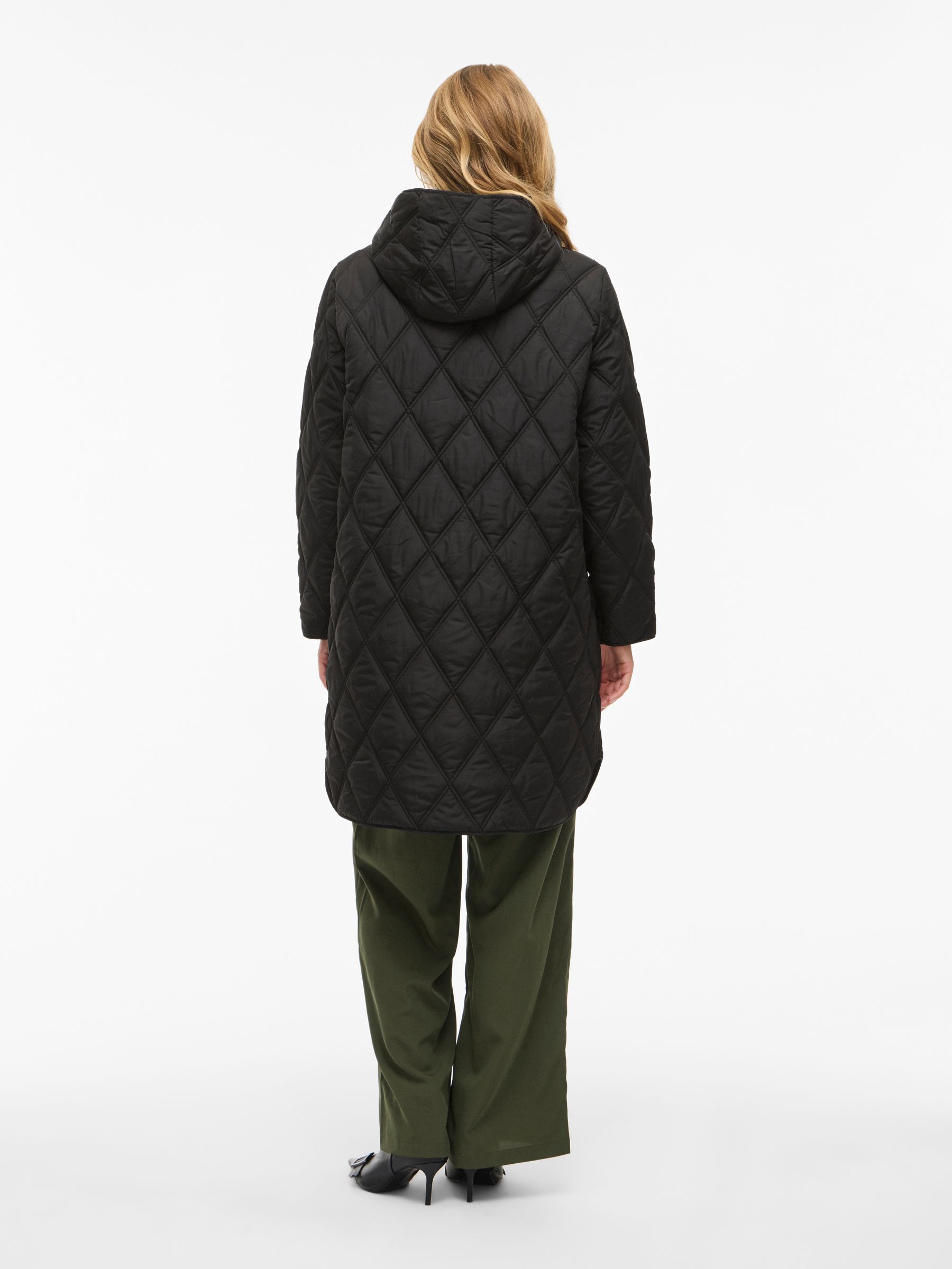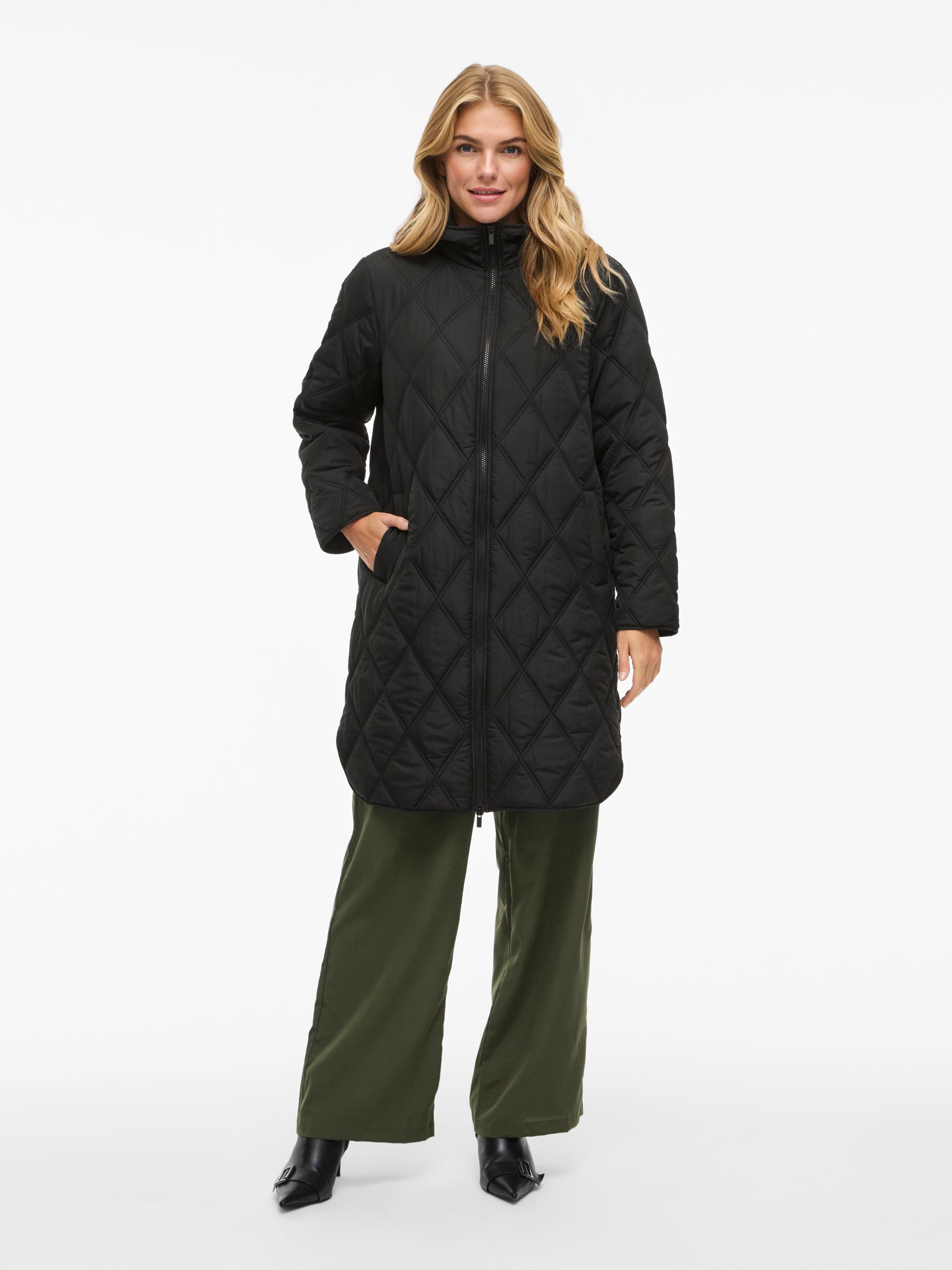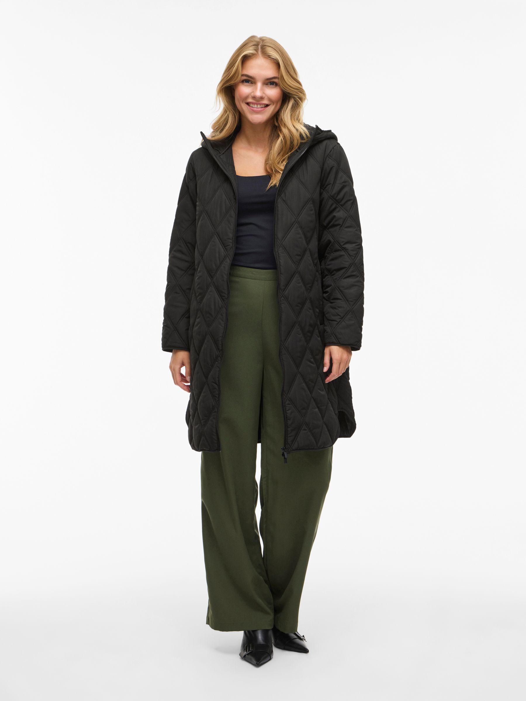 • Quilted coat with hood• Front zipper closure• Zipper open from top and bottom• Open front pockets• Regular fit• Length: 100 cm in size 38• Sleeve length: 62 cm in size 38