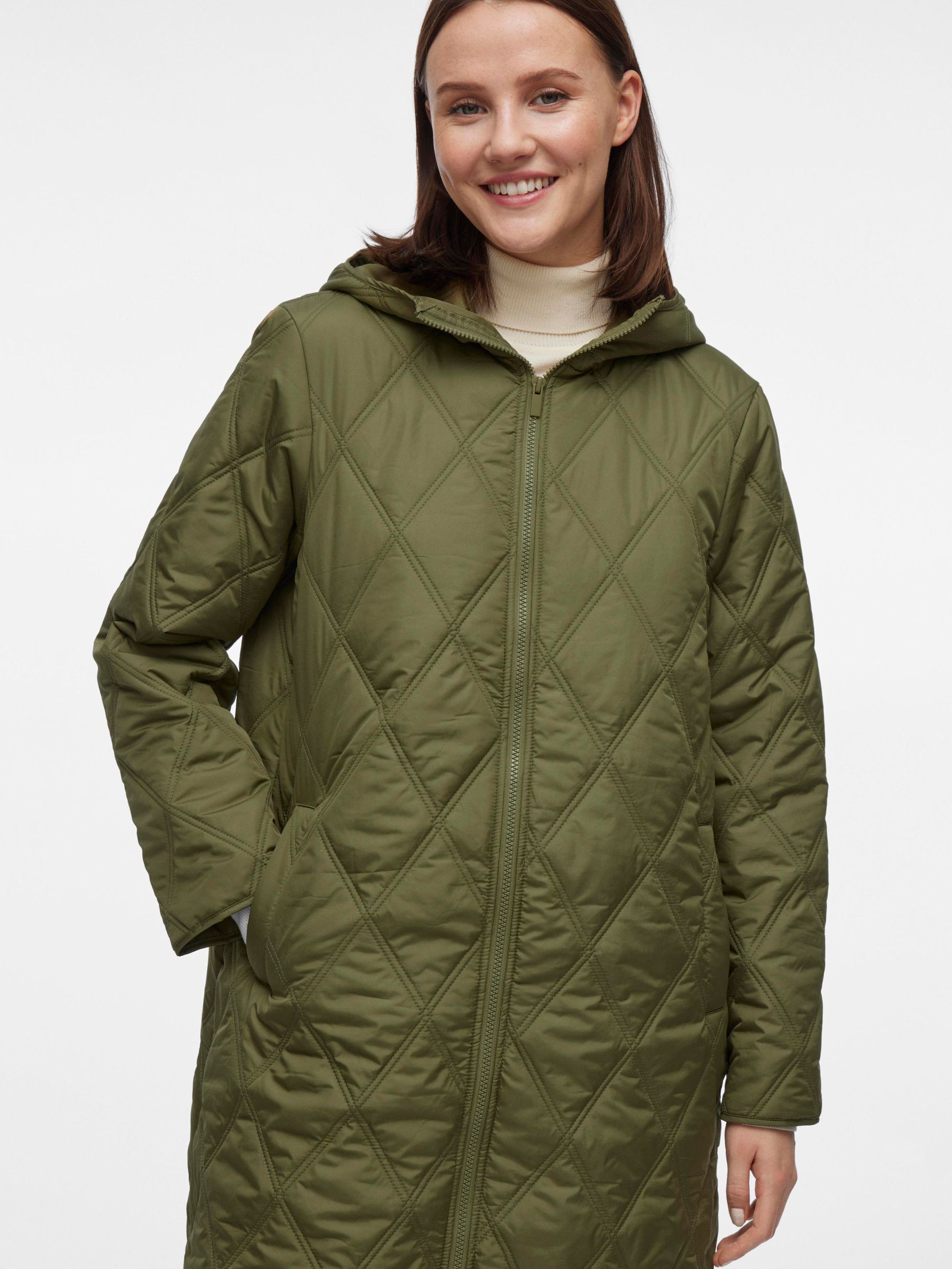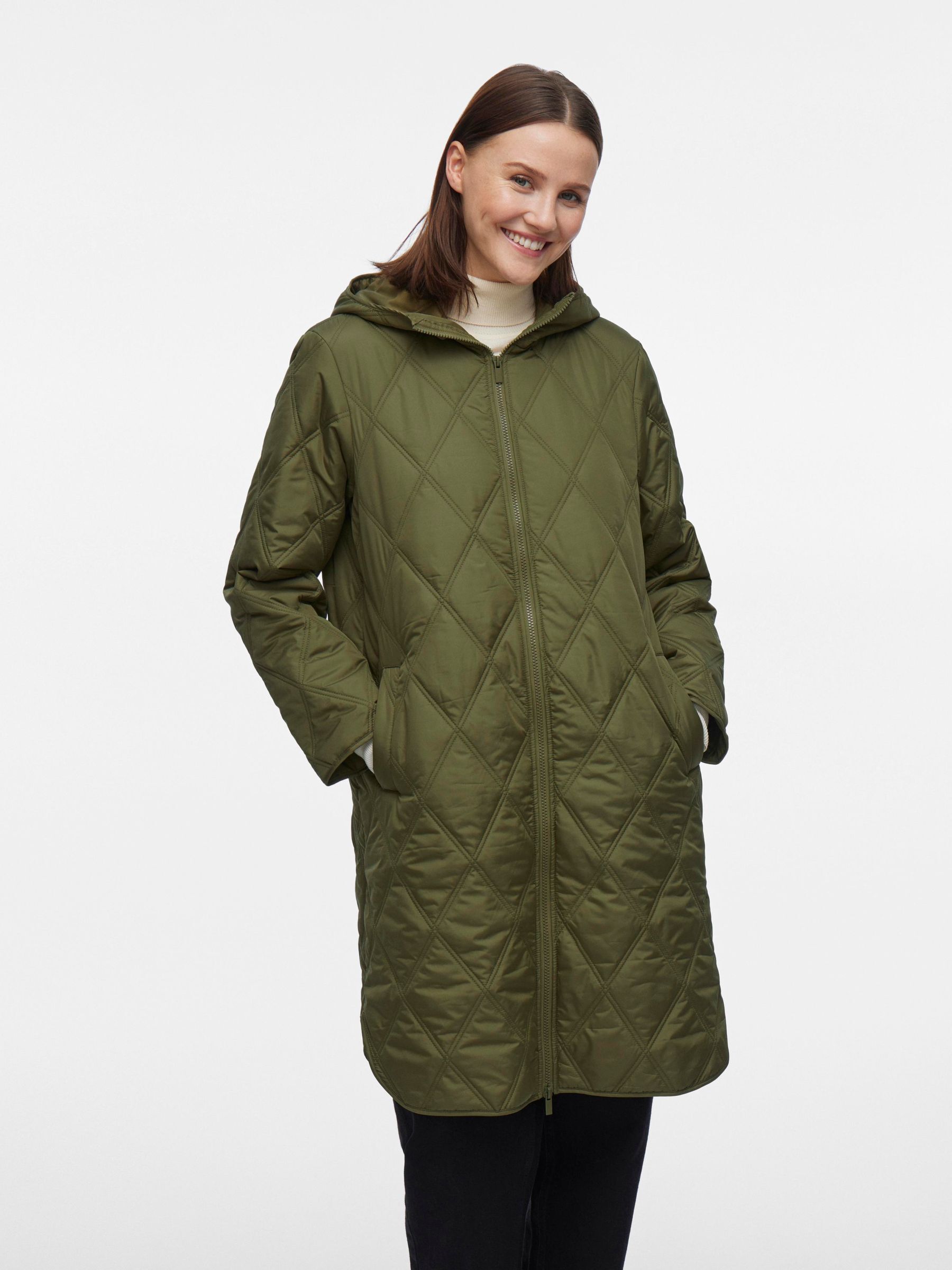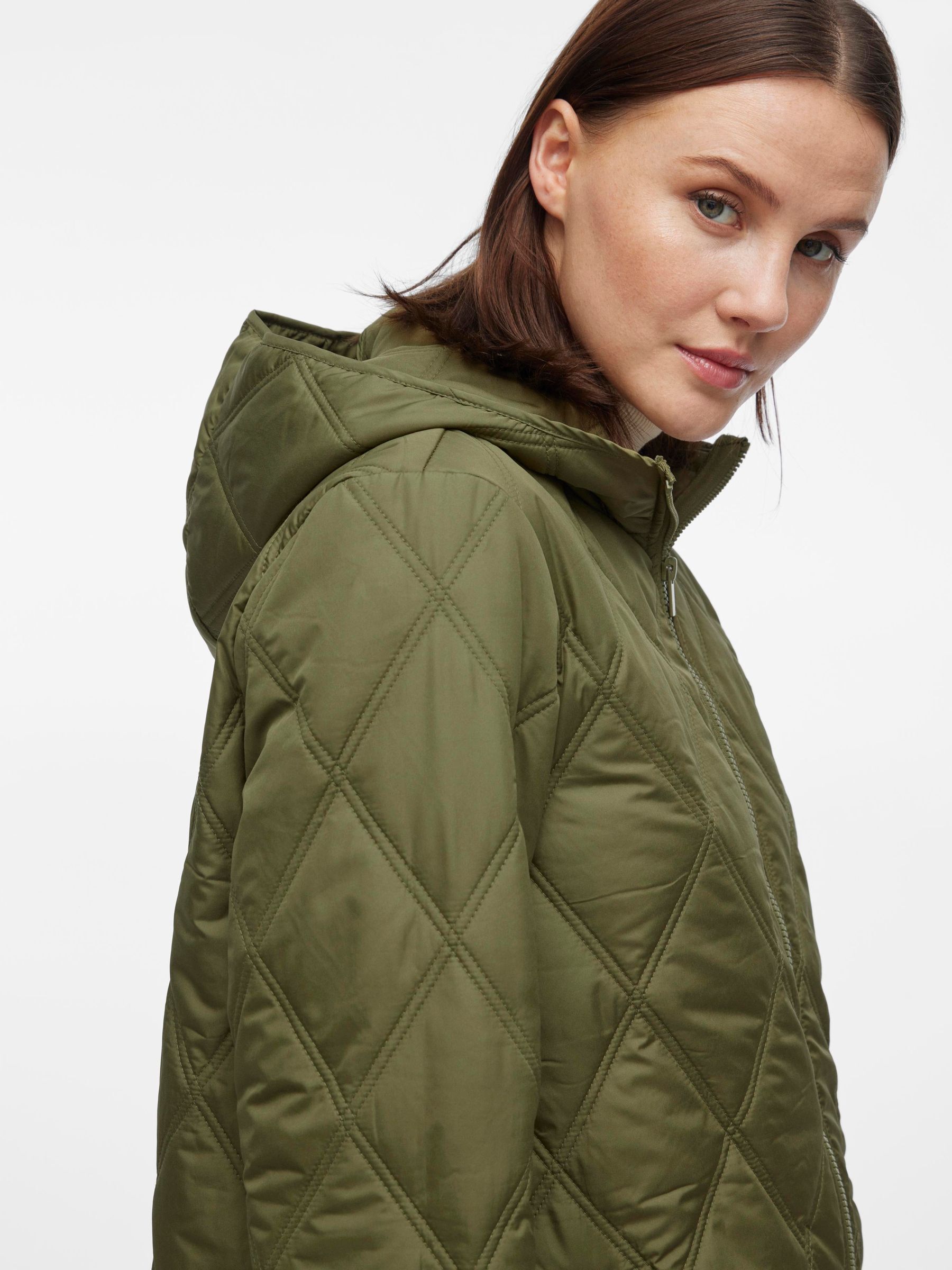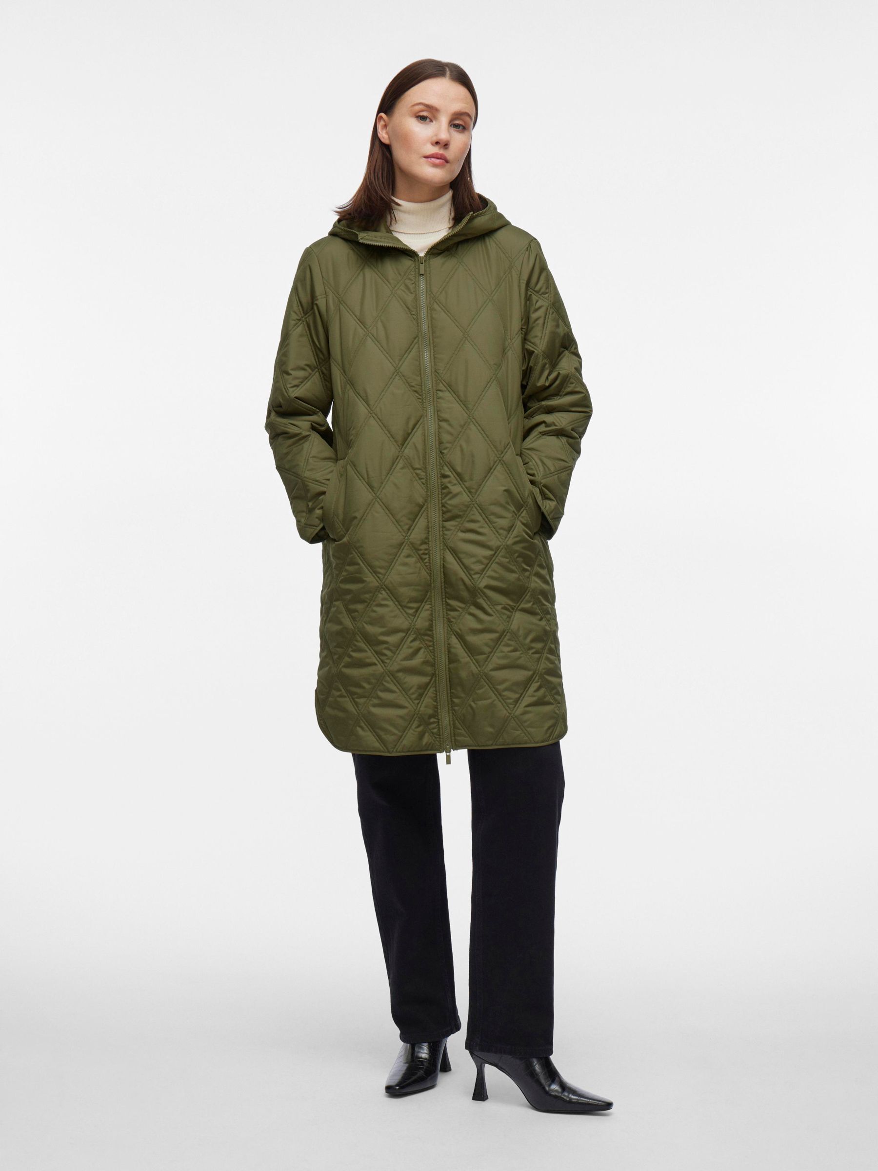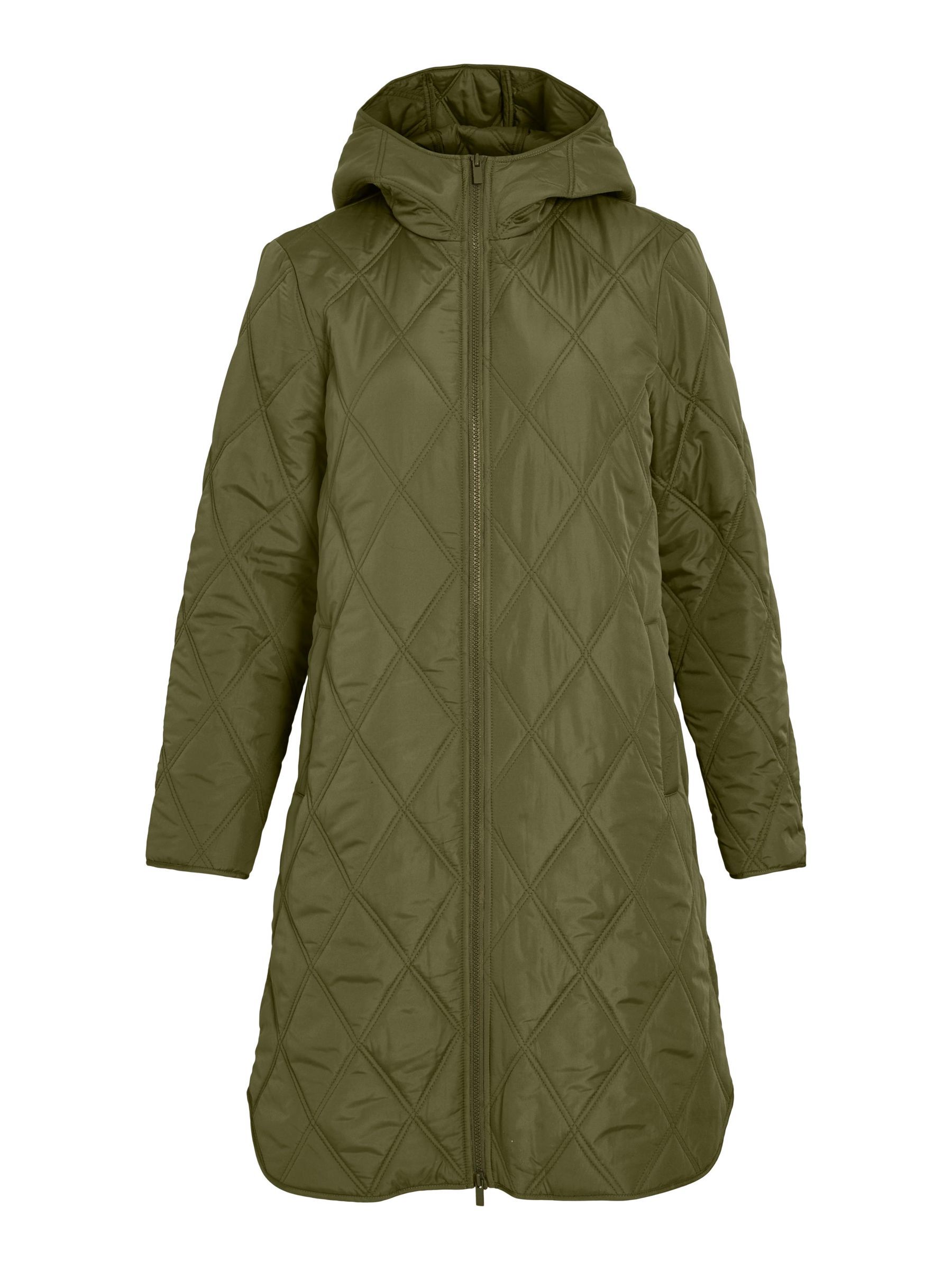 • Quilted coat with hood• Front zipper closure• Zipper open from top and bottom• Open front pockets• Regular fit• Length: 100 cm in size 38• Sleeve length: 62 cm in size 38