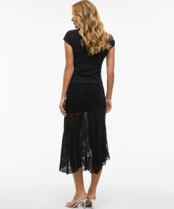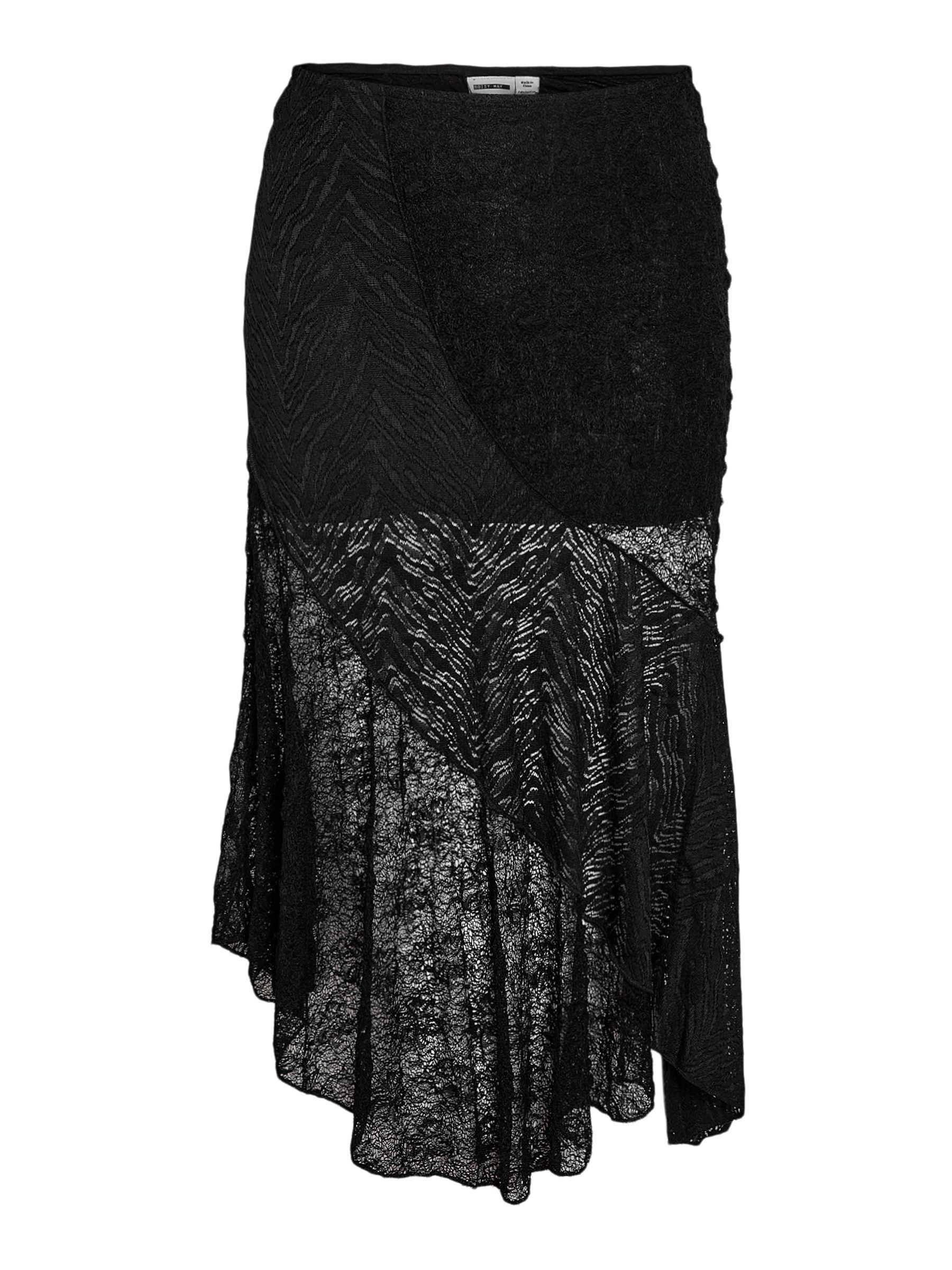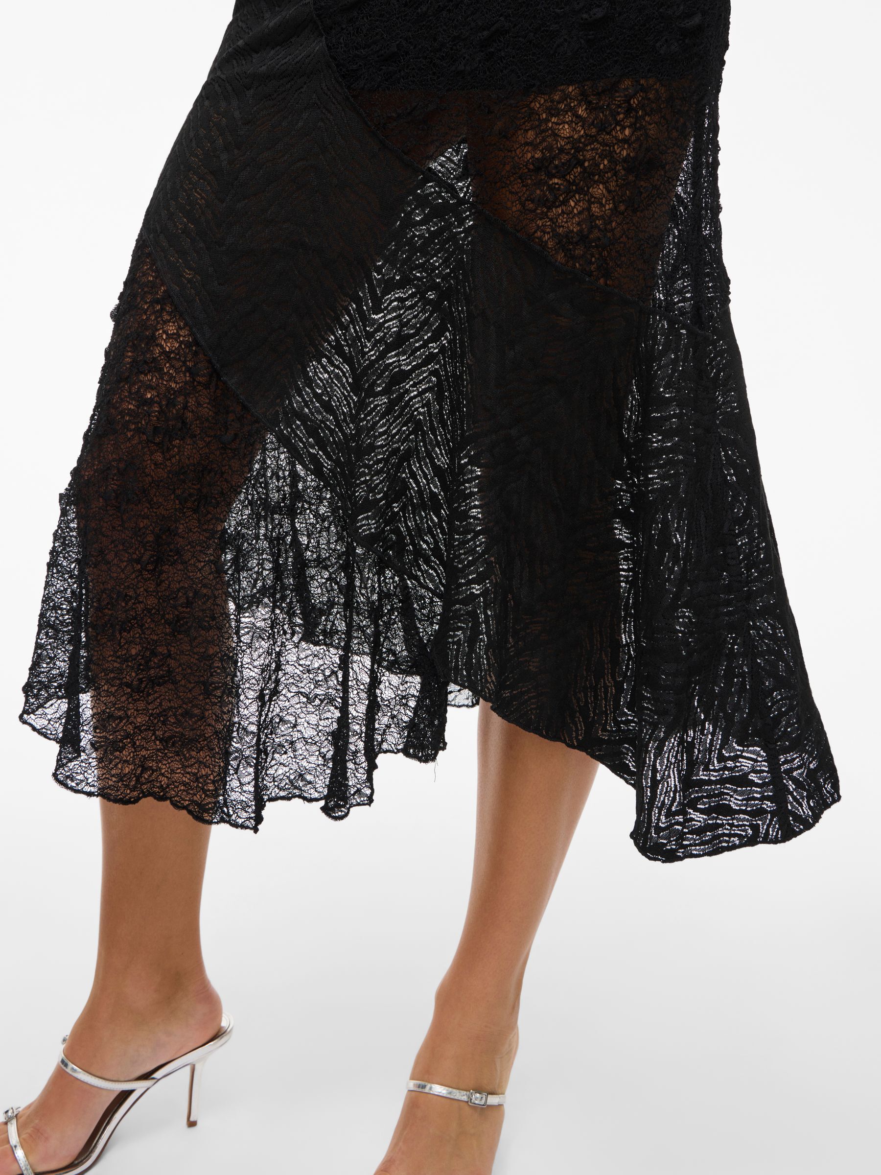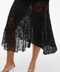 – Lace midi skirt- Mid rise elasticated waist- Asymmetric hemline- Slim fit
