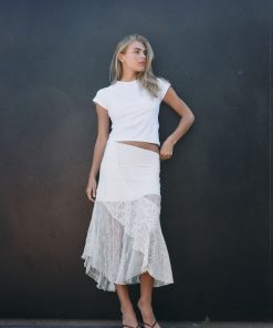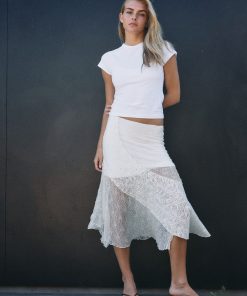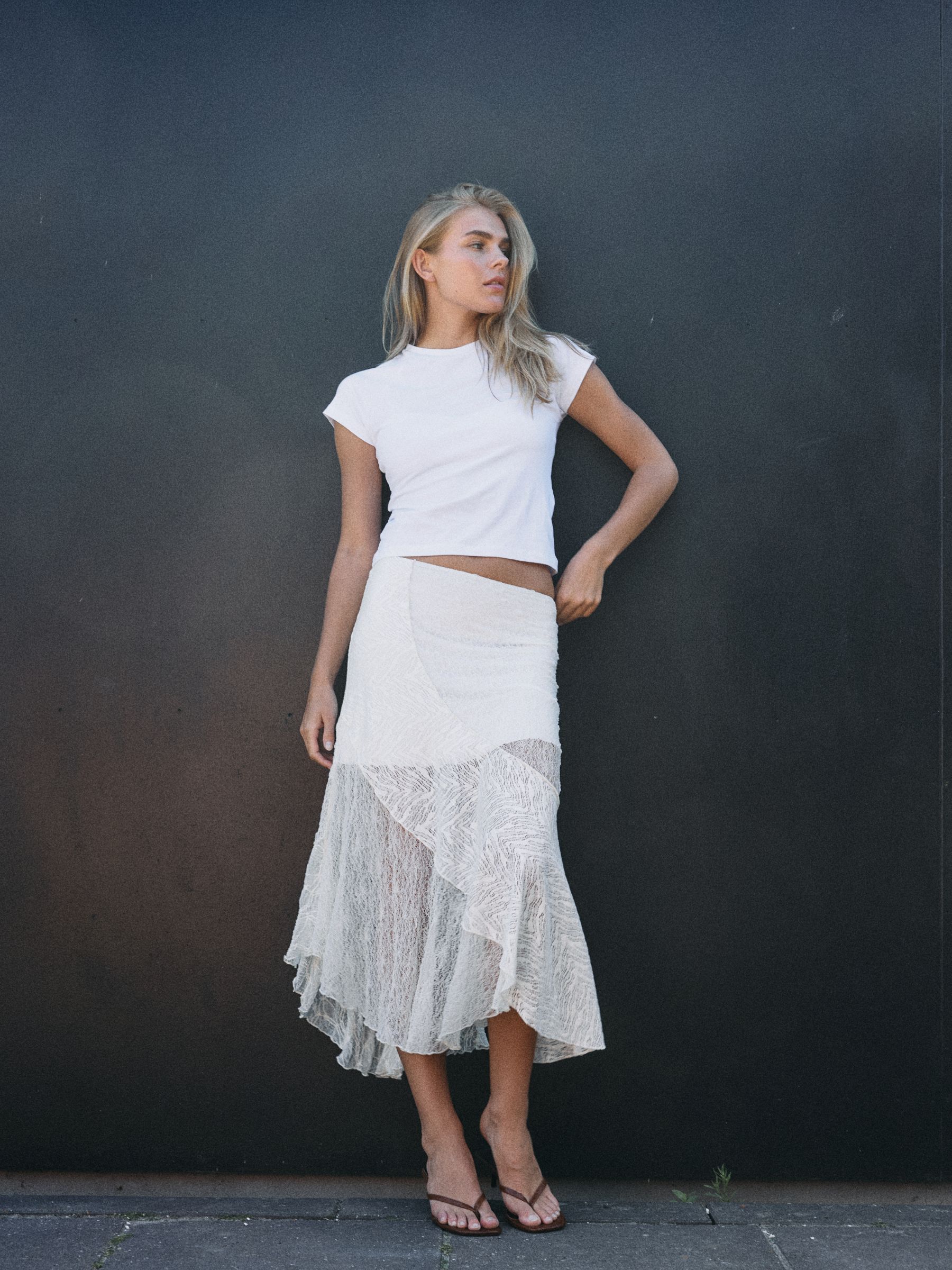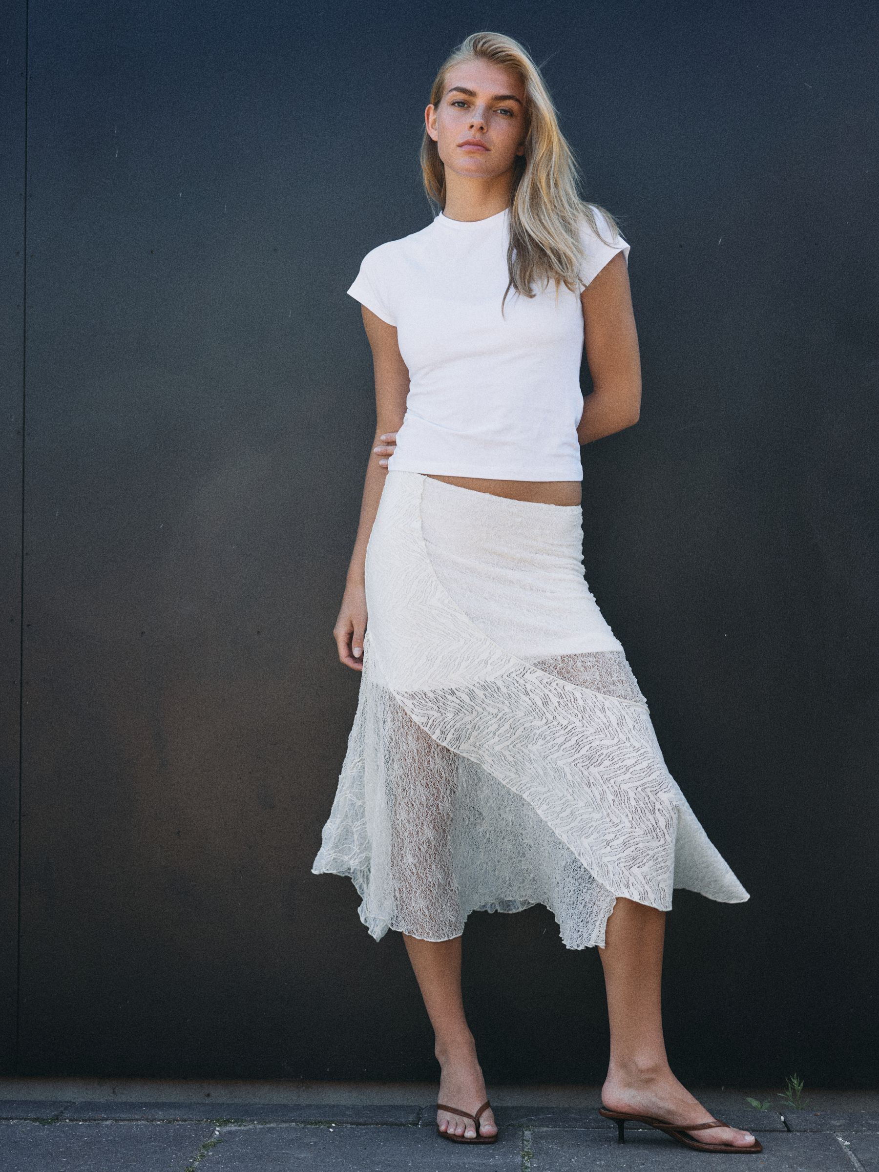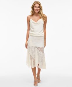 VILA Women’s Lace Midi Skirt | Cloud Dancer