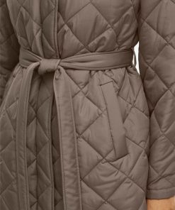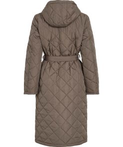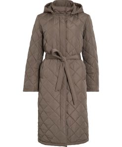 – Long quilted coat- Removable hood- Tie waist with removable belt- Front pockets- Combined zip and button fastening- Regular fit- Length: 117 cm in size 38- Sleeve length: 61 cm in size 38- Our model is 180 cm tall and wears size 38