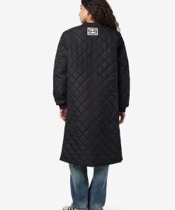 – Longline quilted jacket- Baseball collar- Long sleeves with knitted elasticated cuffs- Zip-up front- Side zip detail- Lined- Regular fit- Model is wearing size M
