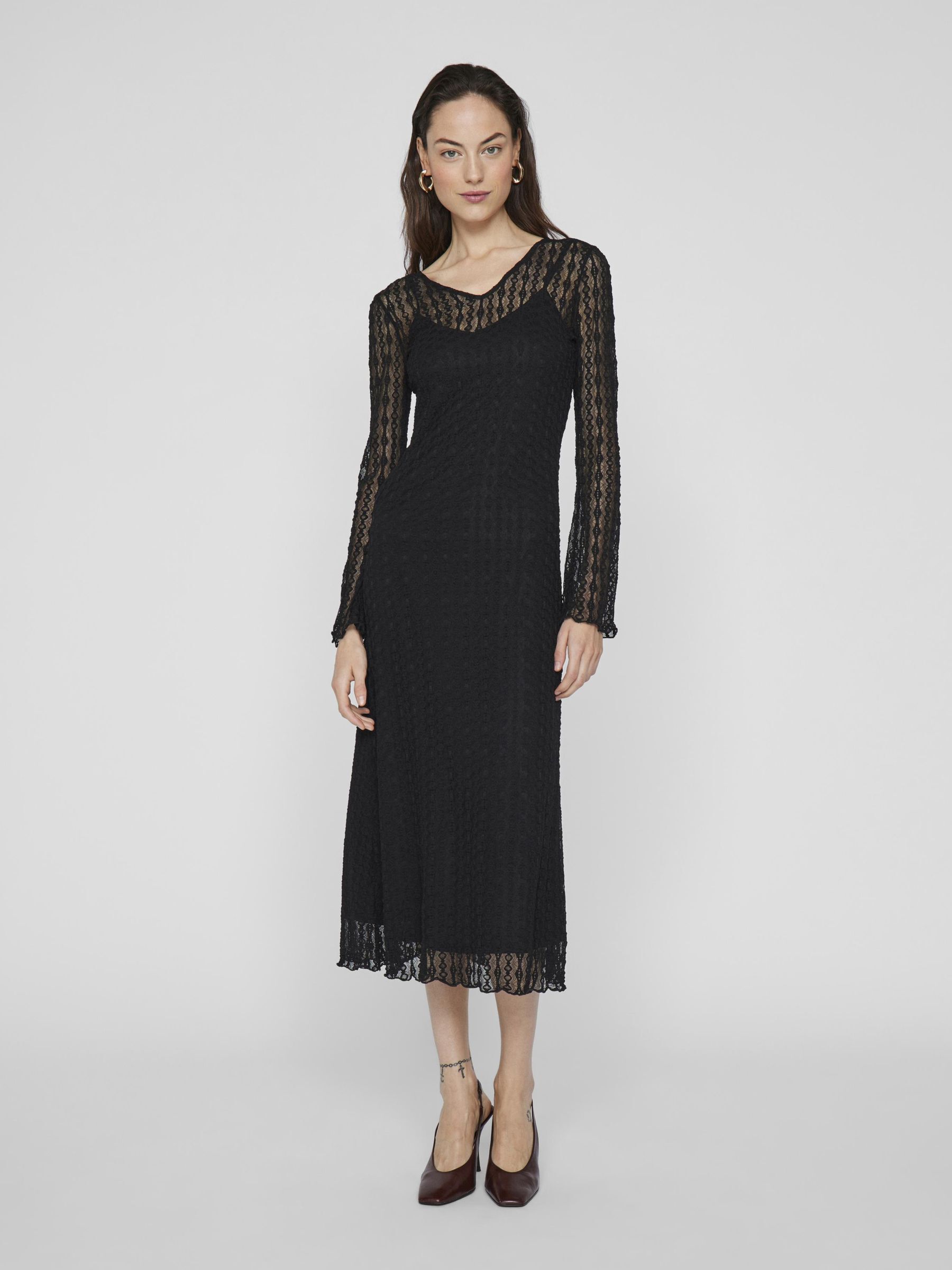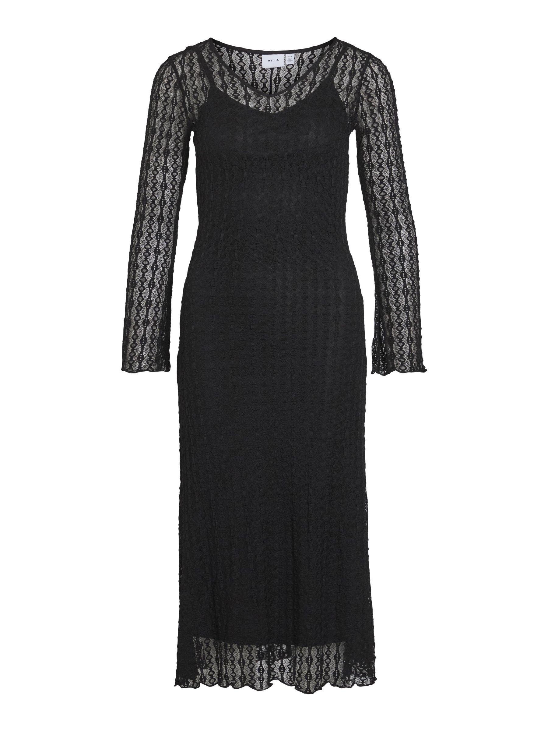 • Midi lace dress• Long sleeves• V-neck• Comes with inner strap dress• Regular fit• Length: 125 cm in size M• Sleeve length: 66 cm in size M
