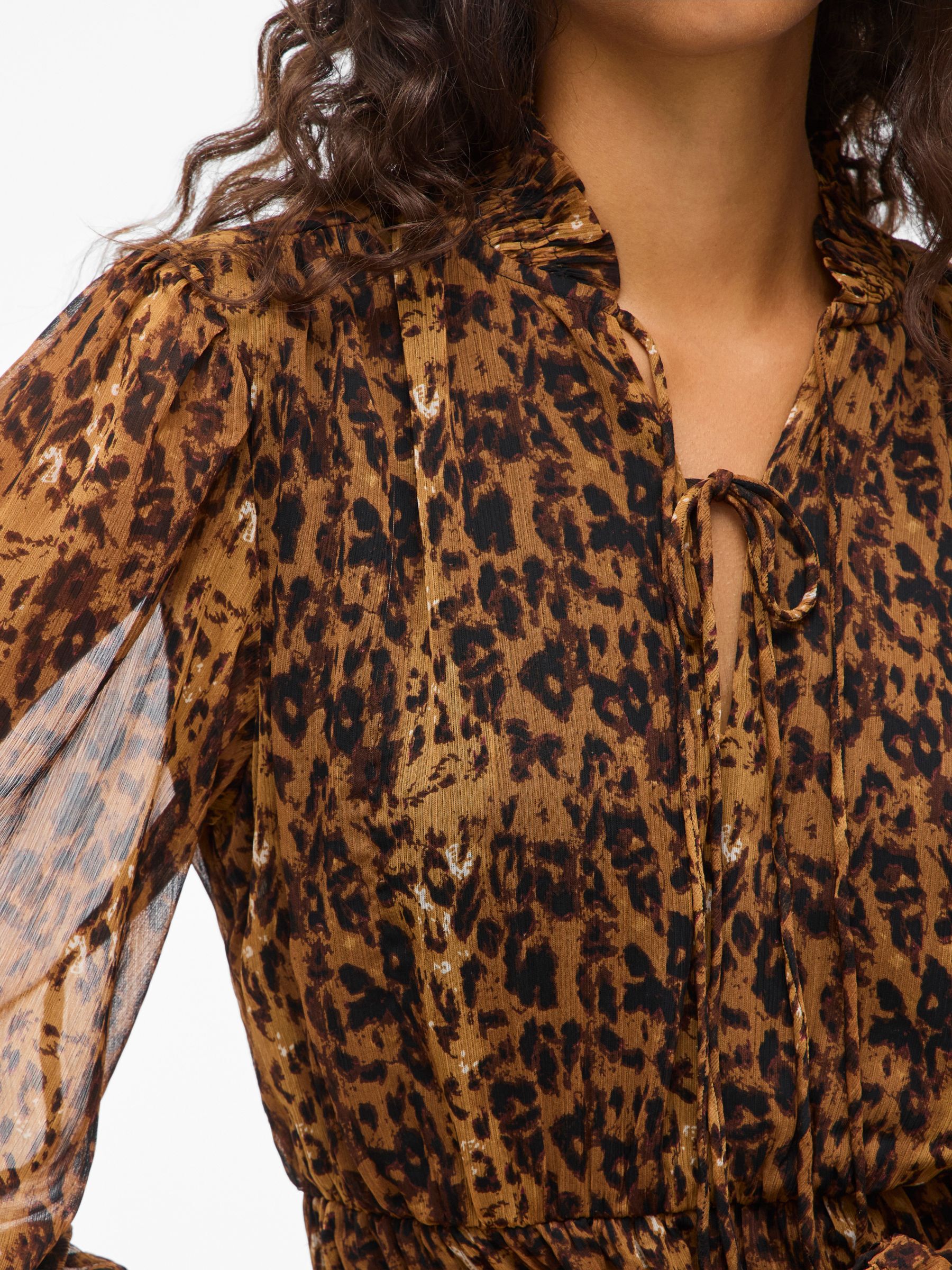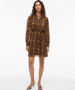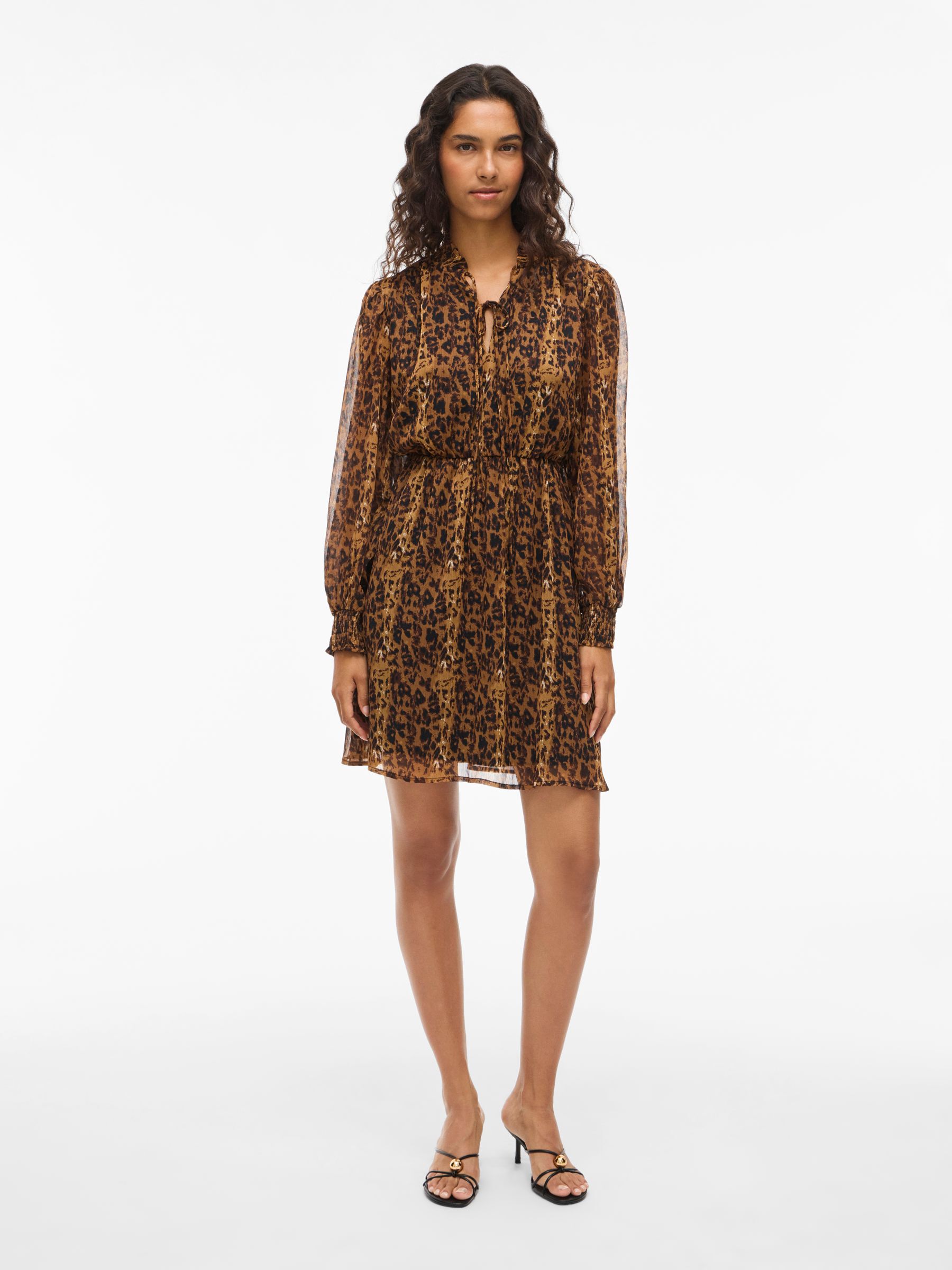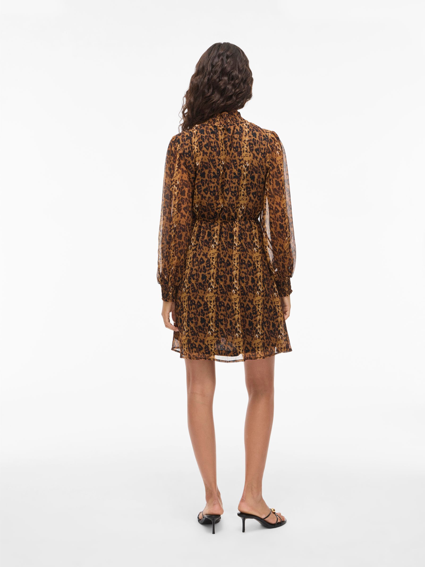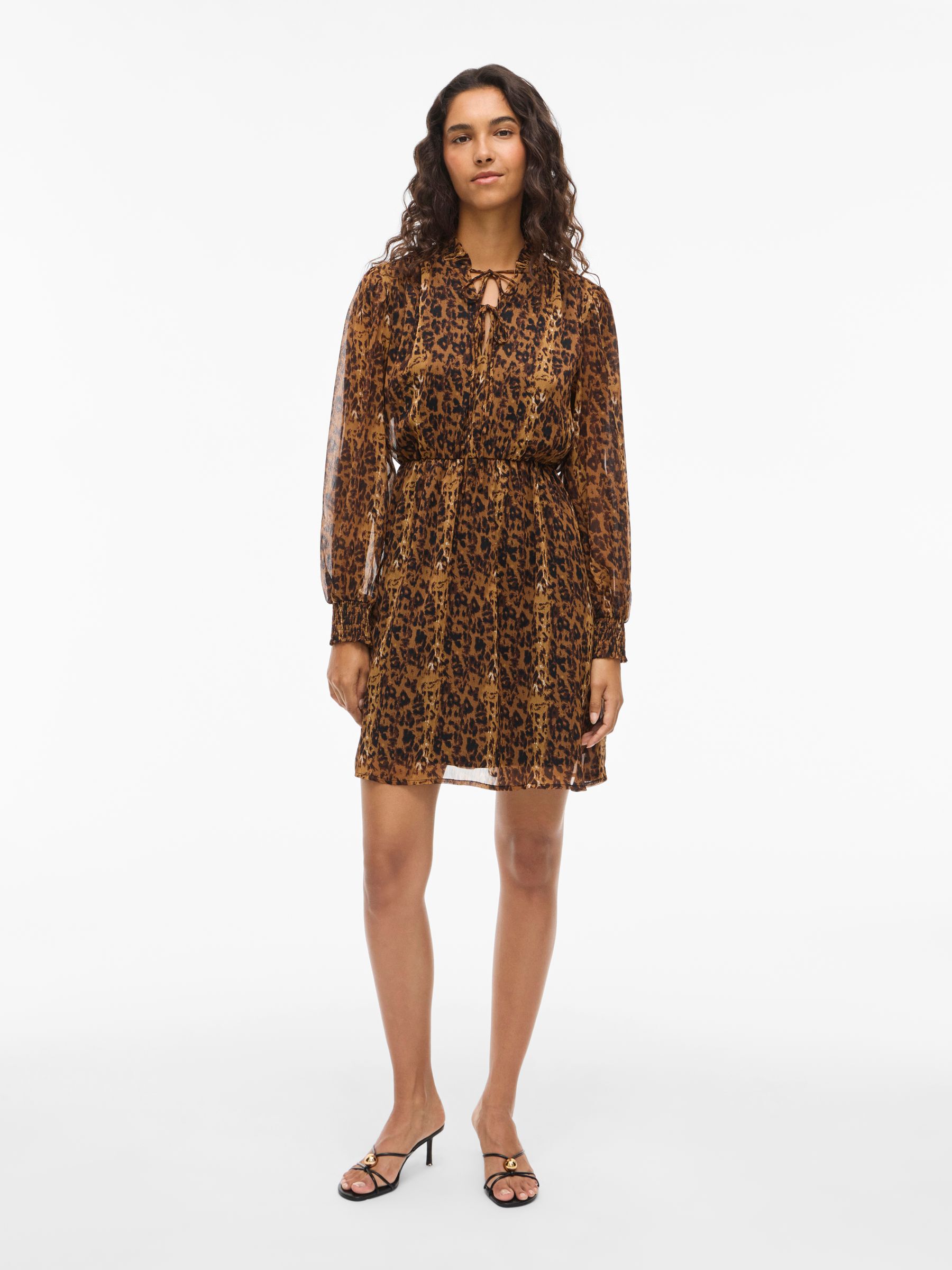 • Patterned short dress• Long sleeves• Split neck with tie strings• Elastic cutline at waist• Lined body with semi-sheer overlay• Regular fit• Length: 90 cm in size 38• Sleeve length: 62 cm in size 38