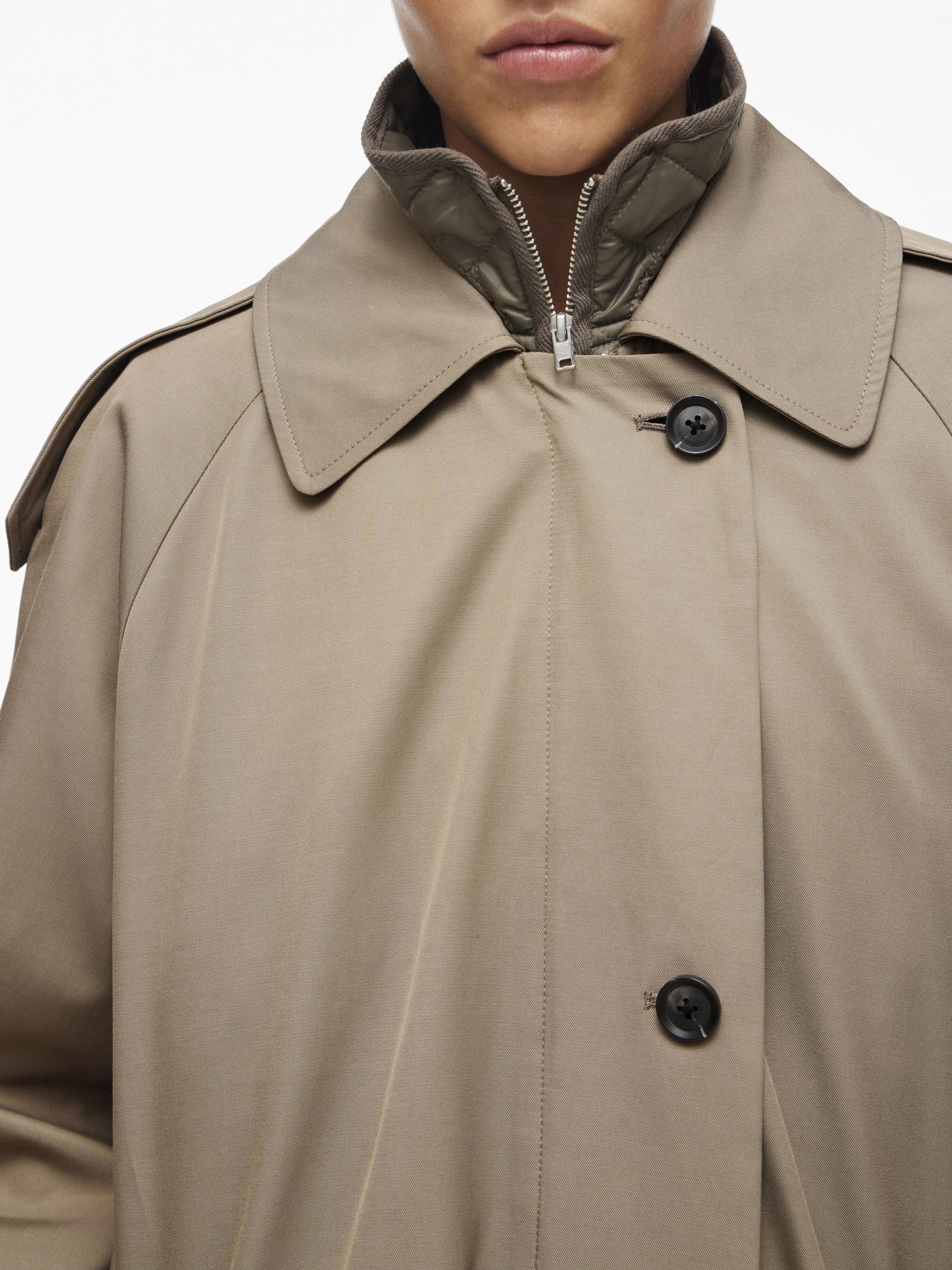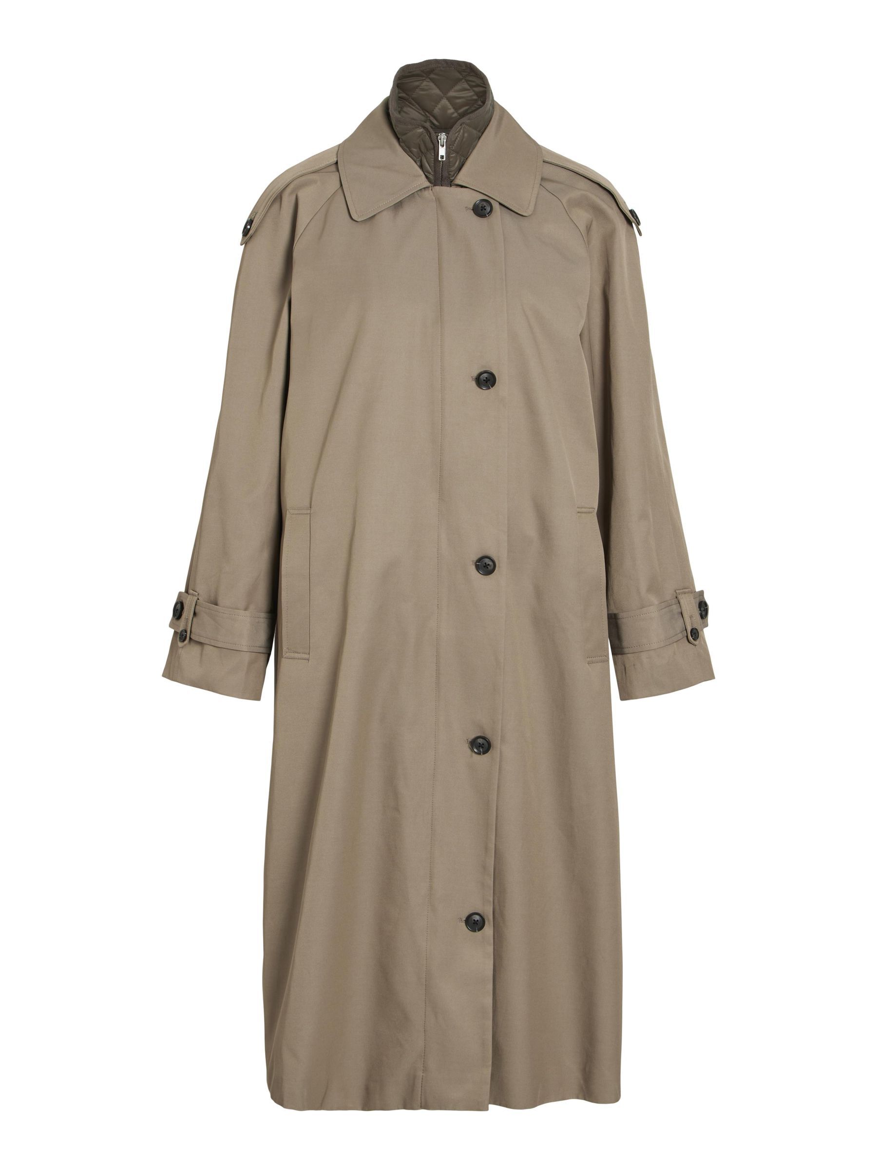 • Long trenchcoat• 2-in-1 coat with vest• Water-repellent• Zipper and button fastening• Front pockets• Dropped shoulders• Buttoned cuffs• Back slit detail• Regular fit• Length: 120 cm in size 38• Sleeve length: 63 cm in size 38