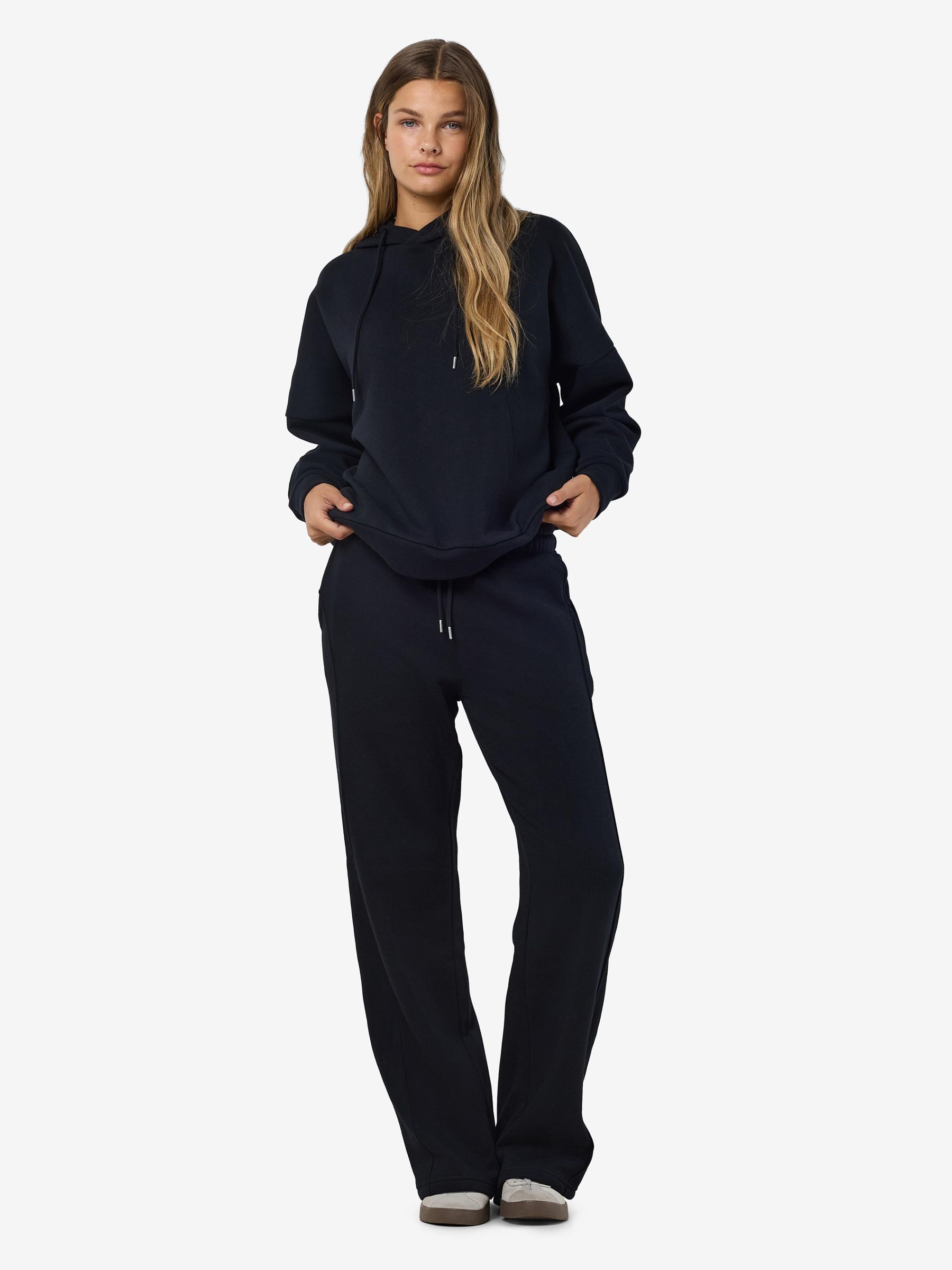 – Loose normal waist sweatpants- Shirred drawstring waist- Side pockets- Straight leg