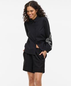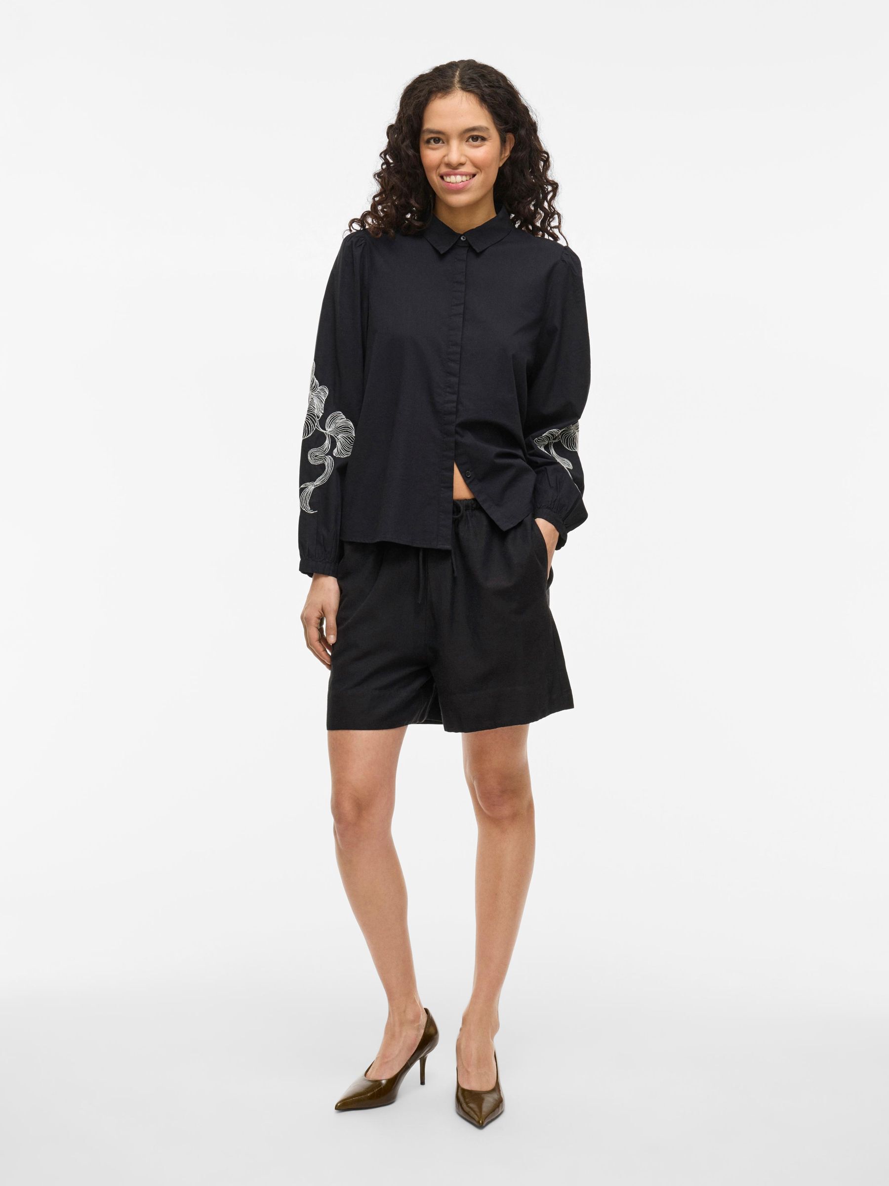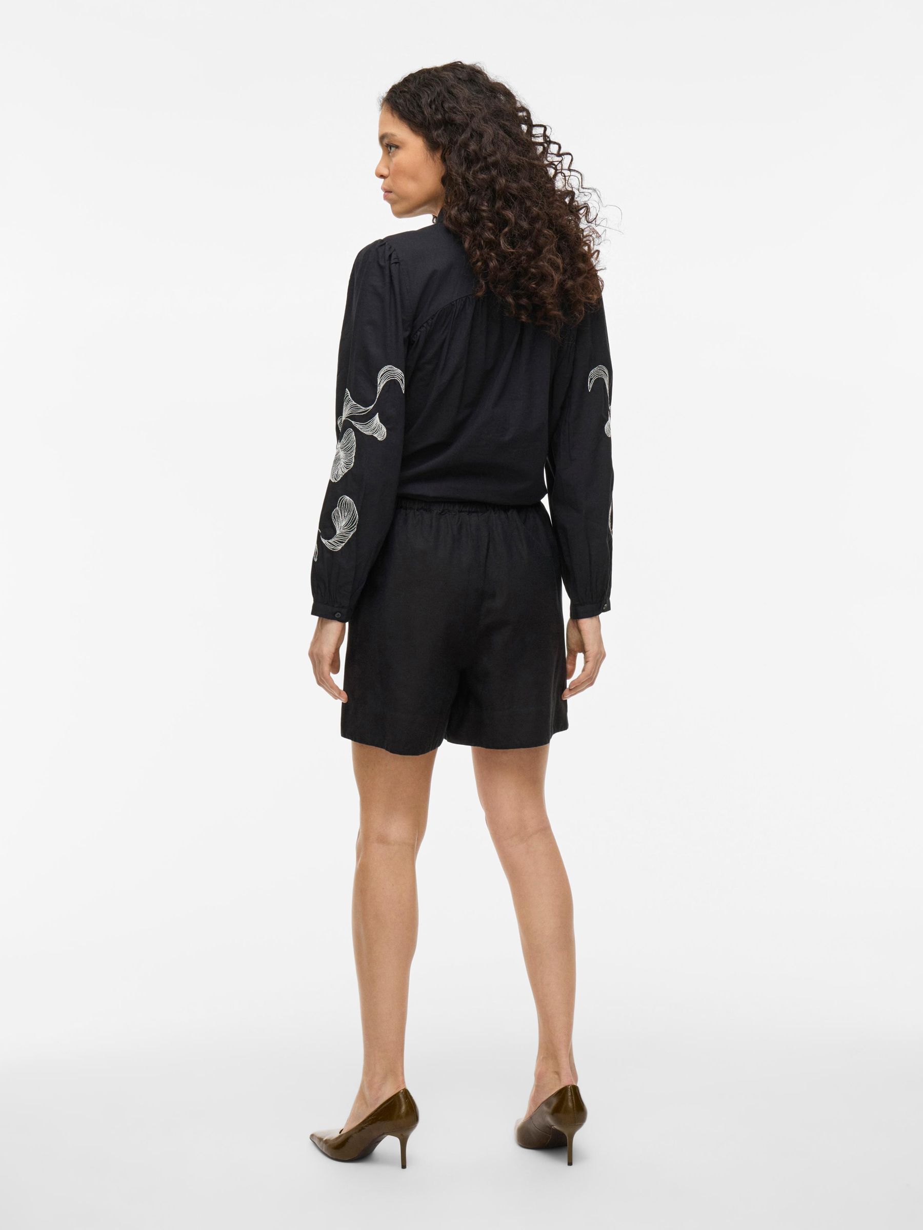 • Mid-waist shorts• Elastic waistband with drawstring• Side pockets• Includes linen• Regular fit• Inseam: 12 cm in size 38• Frontrise: 31 cm in size 38
