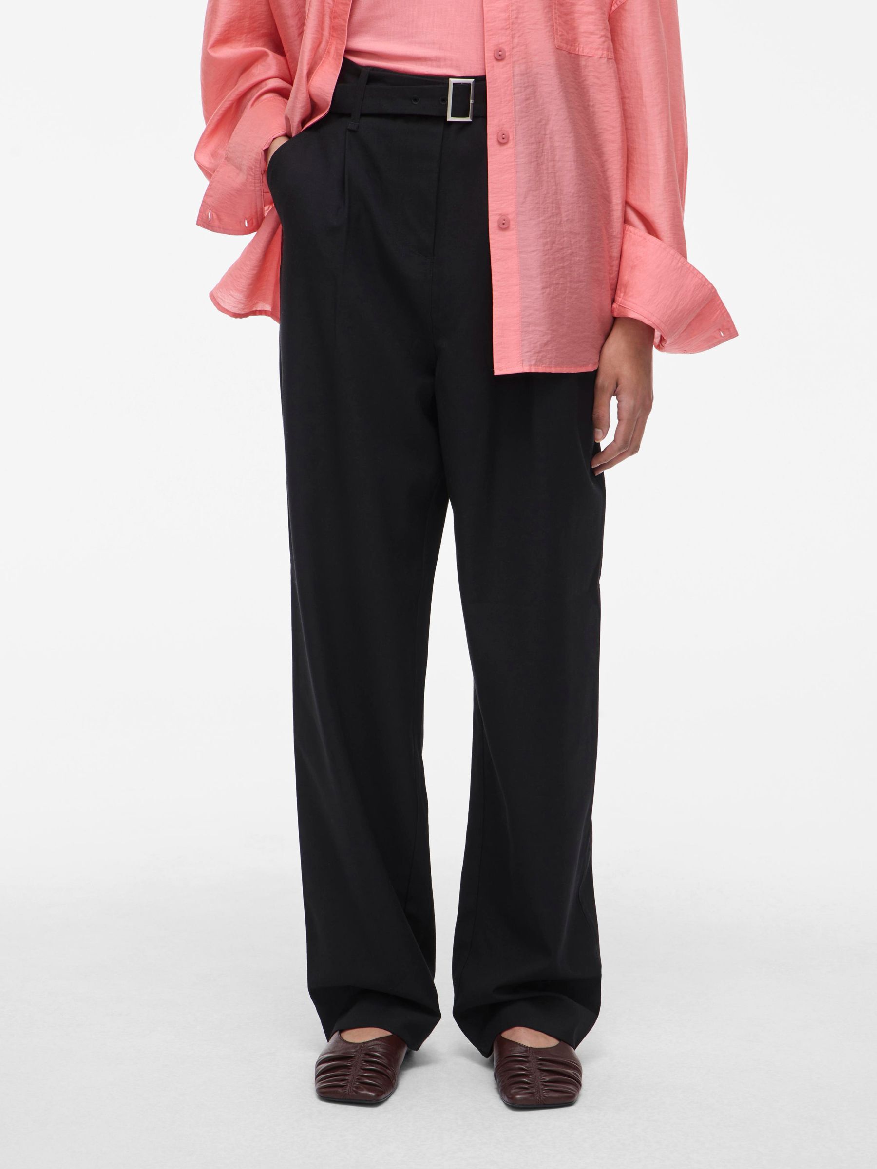 • Tapered trousers• Mid-waist• Zip-up fly with hook and button fastening• Belt loops• Removable belt• Side and back pockets• Inseam: 76.5 cm in size 38• Frontrise: 35.5 cm in size 38