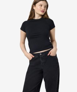 – Basic t-shirt- Round neck- Short raglan sleeves- Tight fit- Model is wearing size M