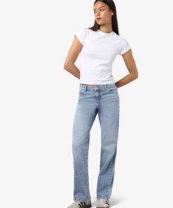 – Low waist wide leg jeans- Belt loops- Jacron patch- 5-pocket design- Zip fly with rivet button fastening- Faded detail- Extra long stacked length- Wide fit