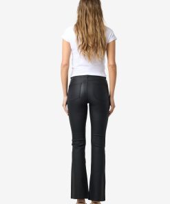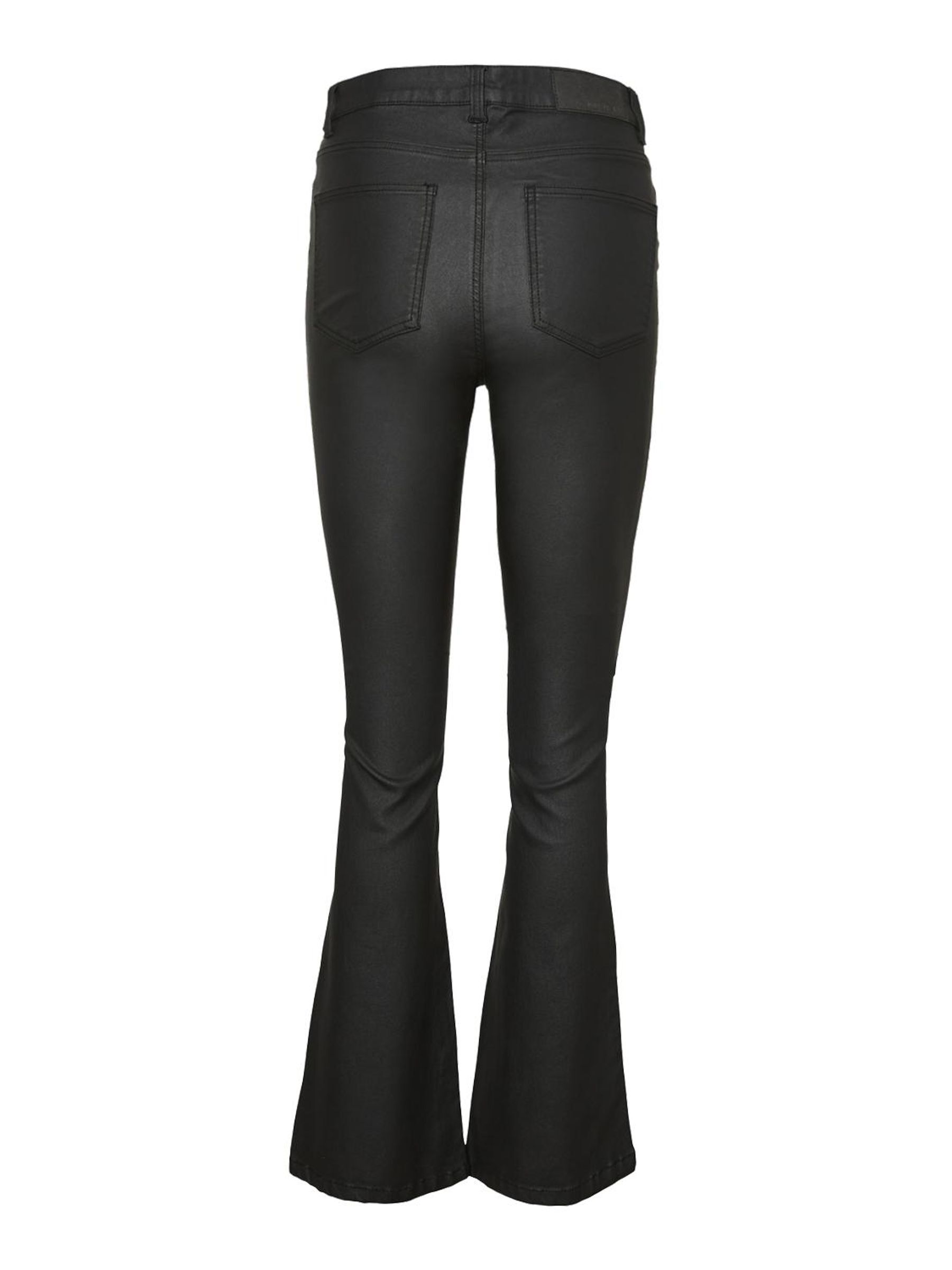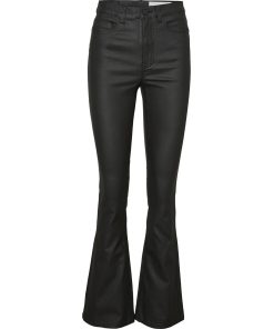 – Coated trousers – High waisted- Flared leg- Belt loops at waist – Zipper and single button fastening at front- Five pockets – Skinny fit