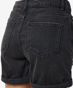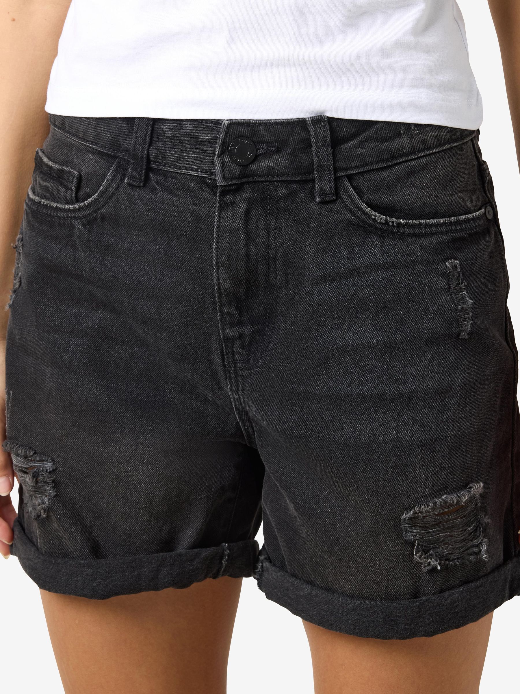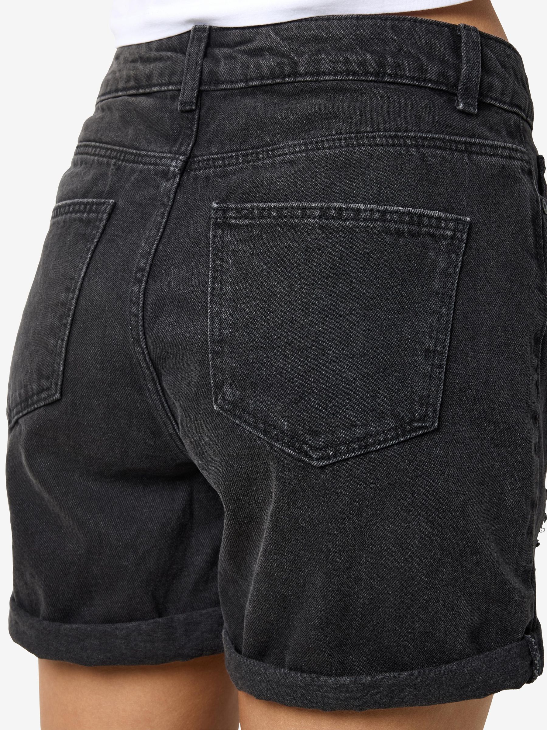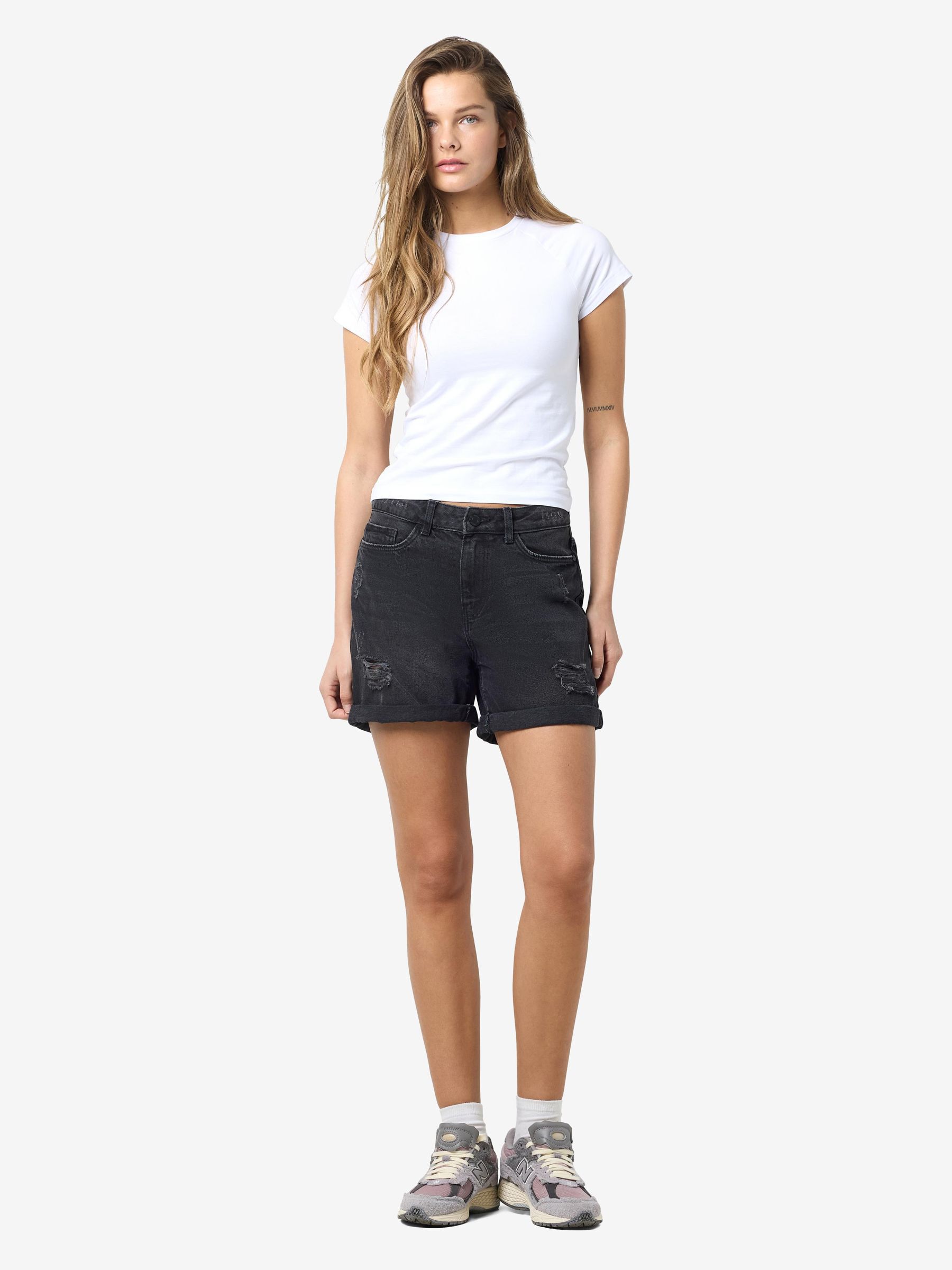 – Denim shorts with normal waist- Regular fit- Soft cotton material- Five pockets- Distressed details- Turn up details. – Inseam: 11 cm in a size S
