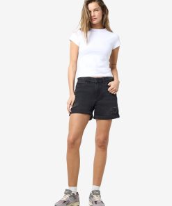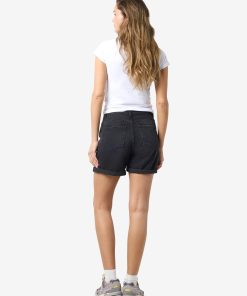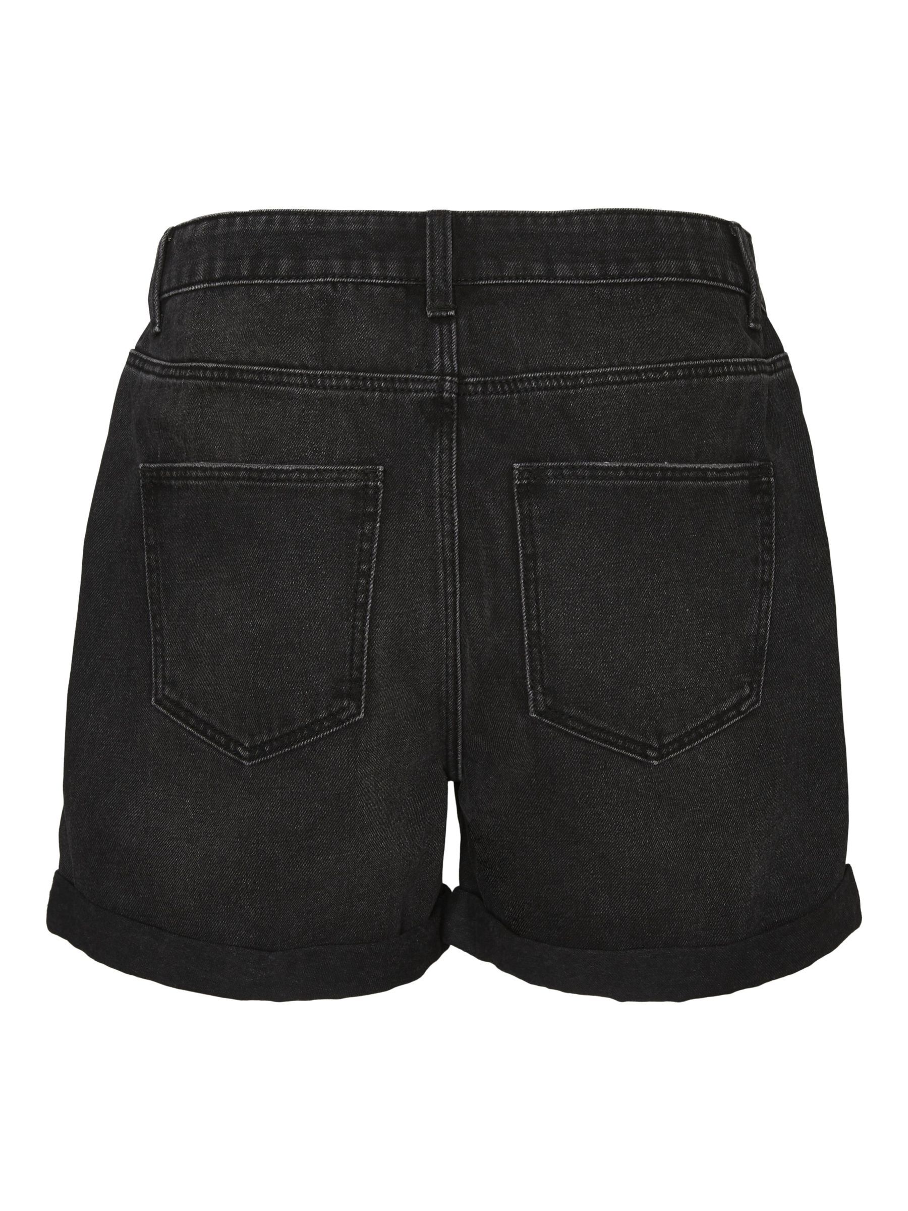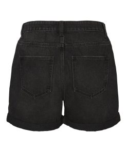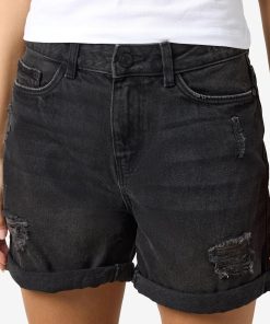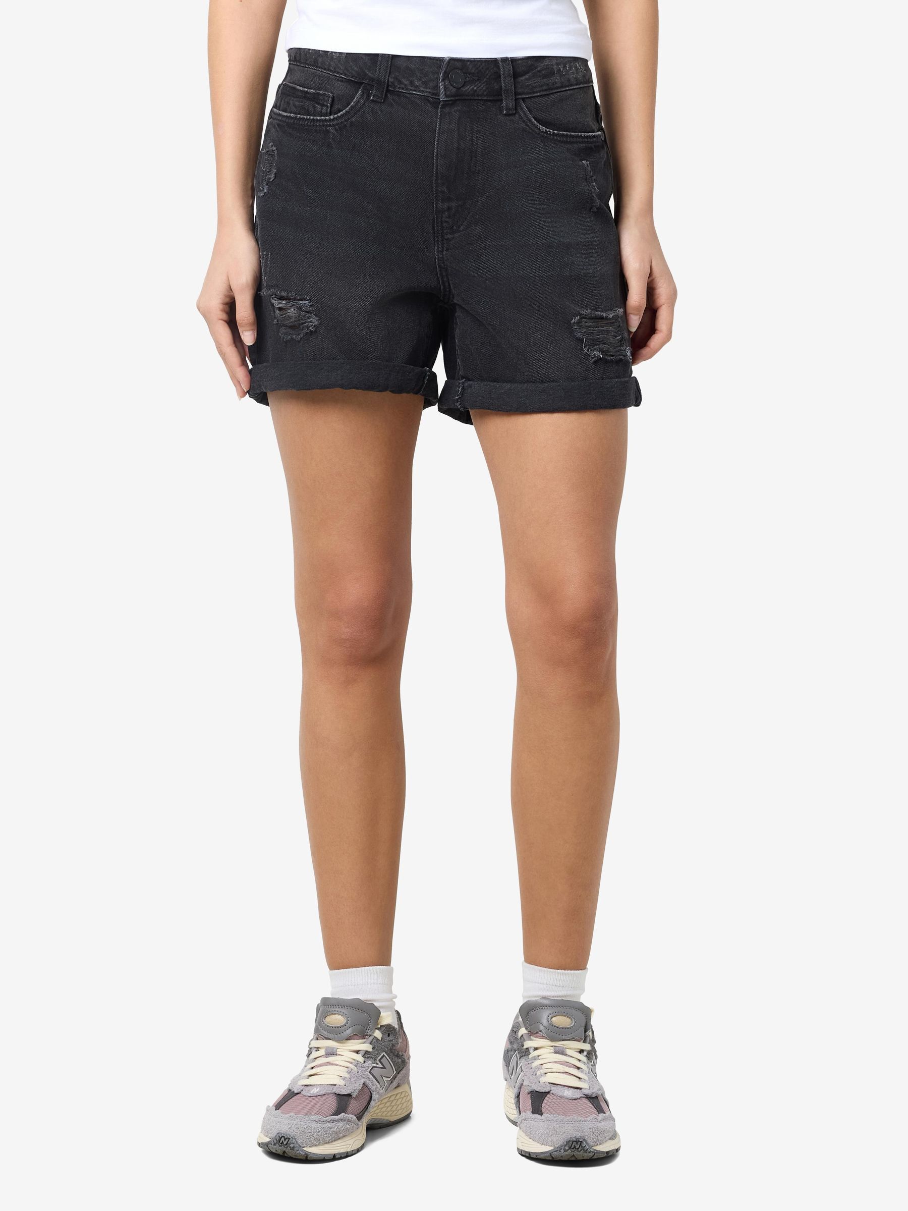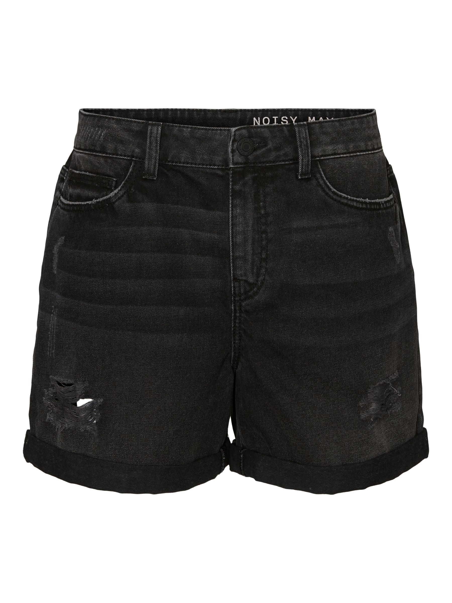 – Denim shorts with normal waist- Regular fit- Soft cotton material- Five pockets- Distressed details- Turn up details. – Inseam: 11 cm in a size S