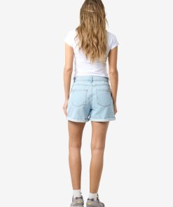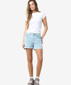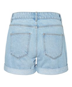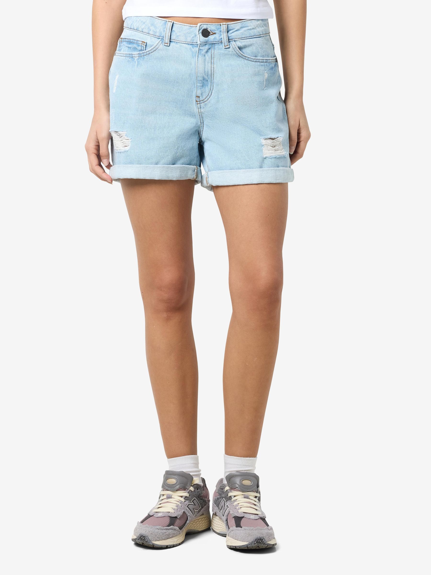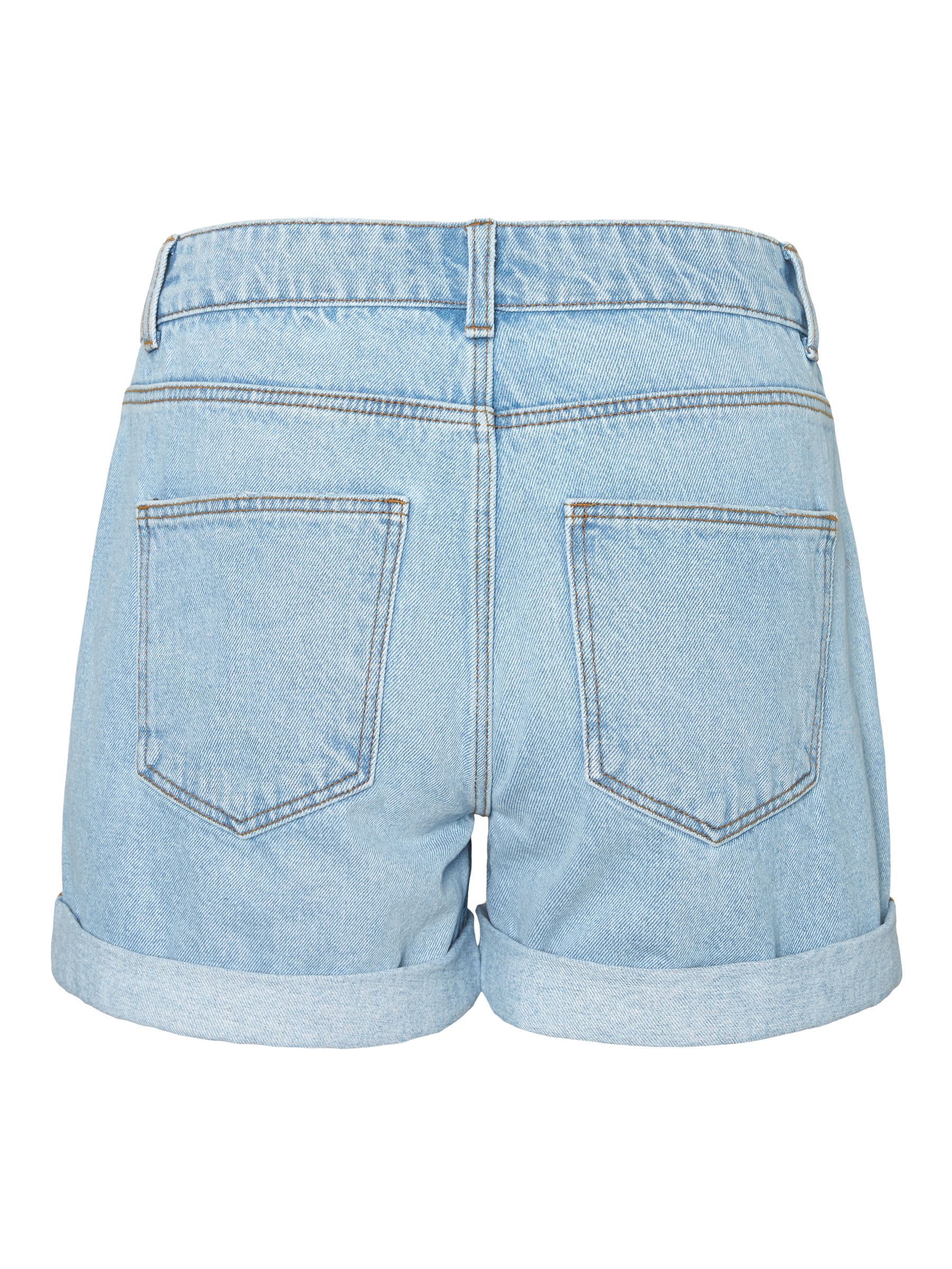 – Denim short with turn up detail- Normal waist- Soft, non-stretchy cotton material- Five pockets- Distressed details- Inseam: 11 cm in a size S