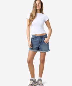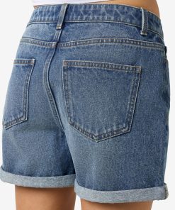 – Denim shorts with normal waist- Regular fit – Soft cotton material- Five pockets- Distressed details- Turn up details- Inseam: 11 cm in a size S
