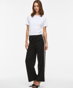 – High waist pants- Wide fit- Stretch-back waistband- Side pockets- Decorative back pockets- Belt loops- Faux fly- Inseam: 80 cm in size 38- Frontrise: 29 cm in size 38- Our model is 178 cm tall and wears size 38