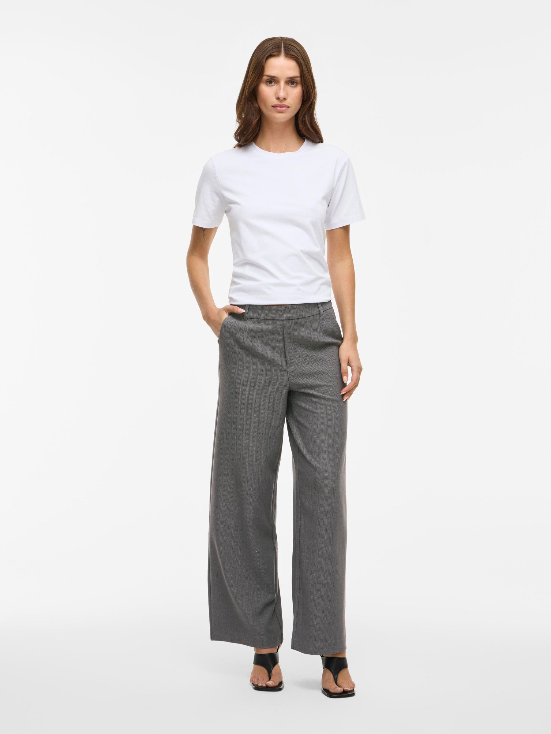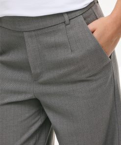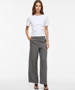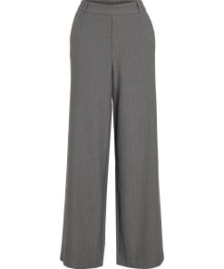 VILA Women’s Pinstripe High Waisted Trousers | Medium Grey Melange