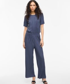 VILA Women’s Ribbed Wide-leg Trousers | Vintage Indigo