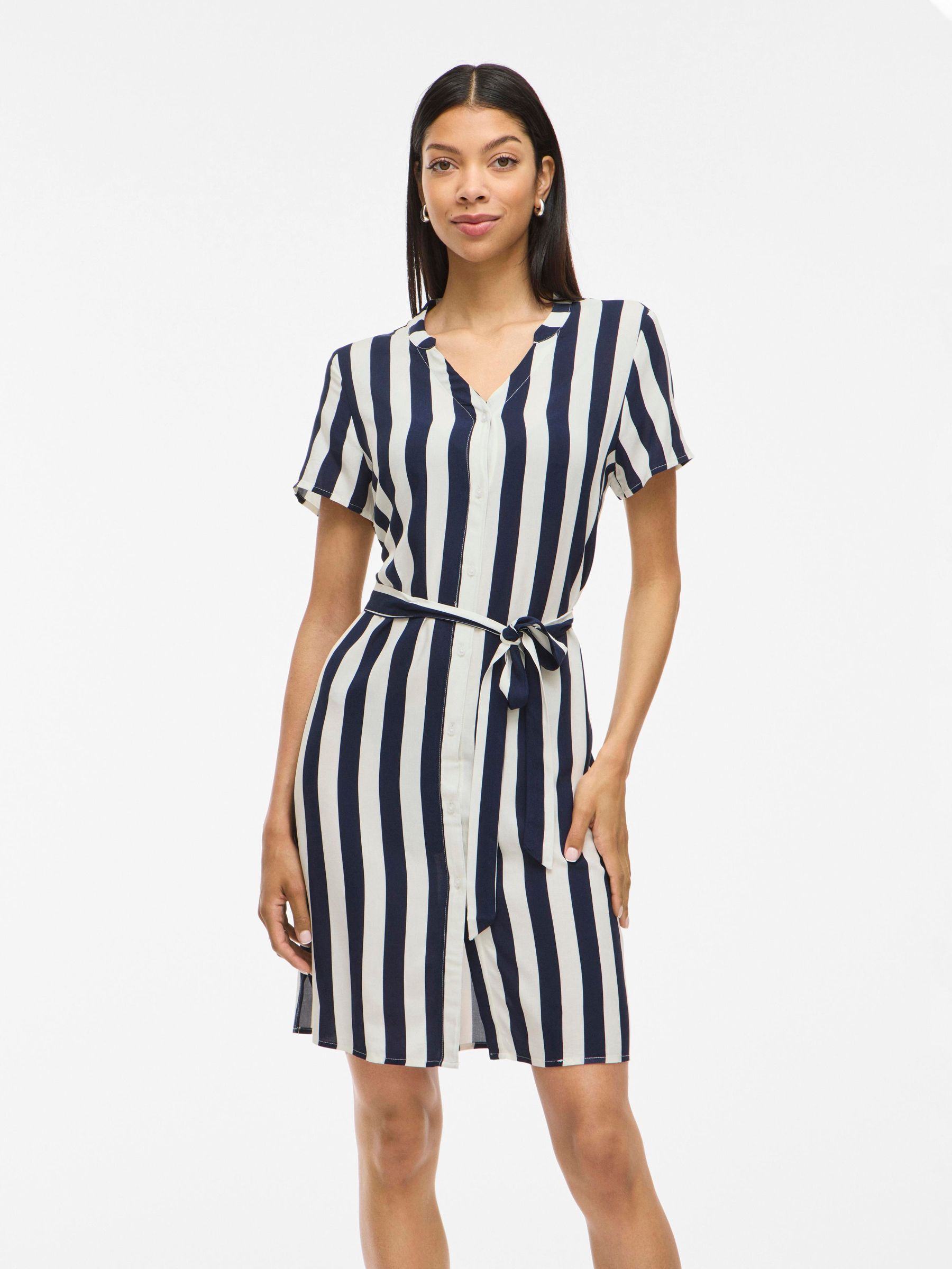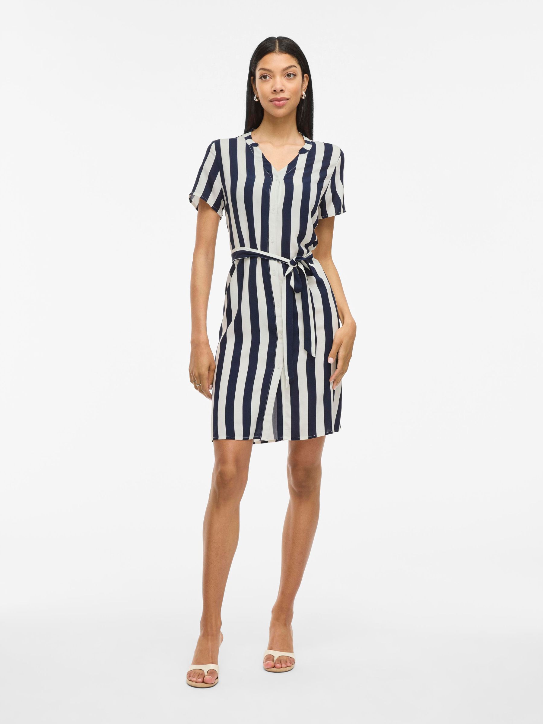 • Short sleeved shirt dress• Short-length• Button up front• V-neck• Tie waist with removable belt• Light fabric• Regular fit• Length: 98 cm in size 38• Sleeve length: 18 cm in size 38