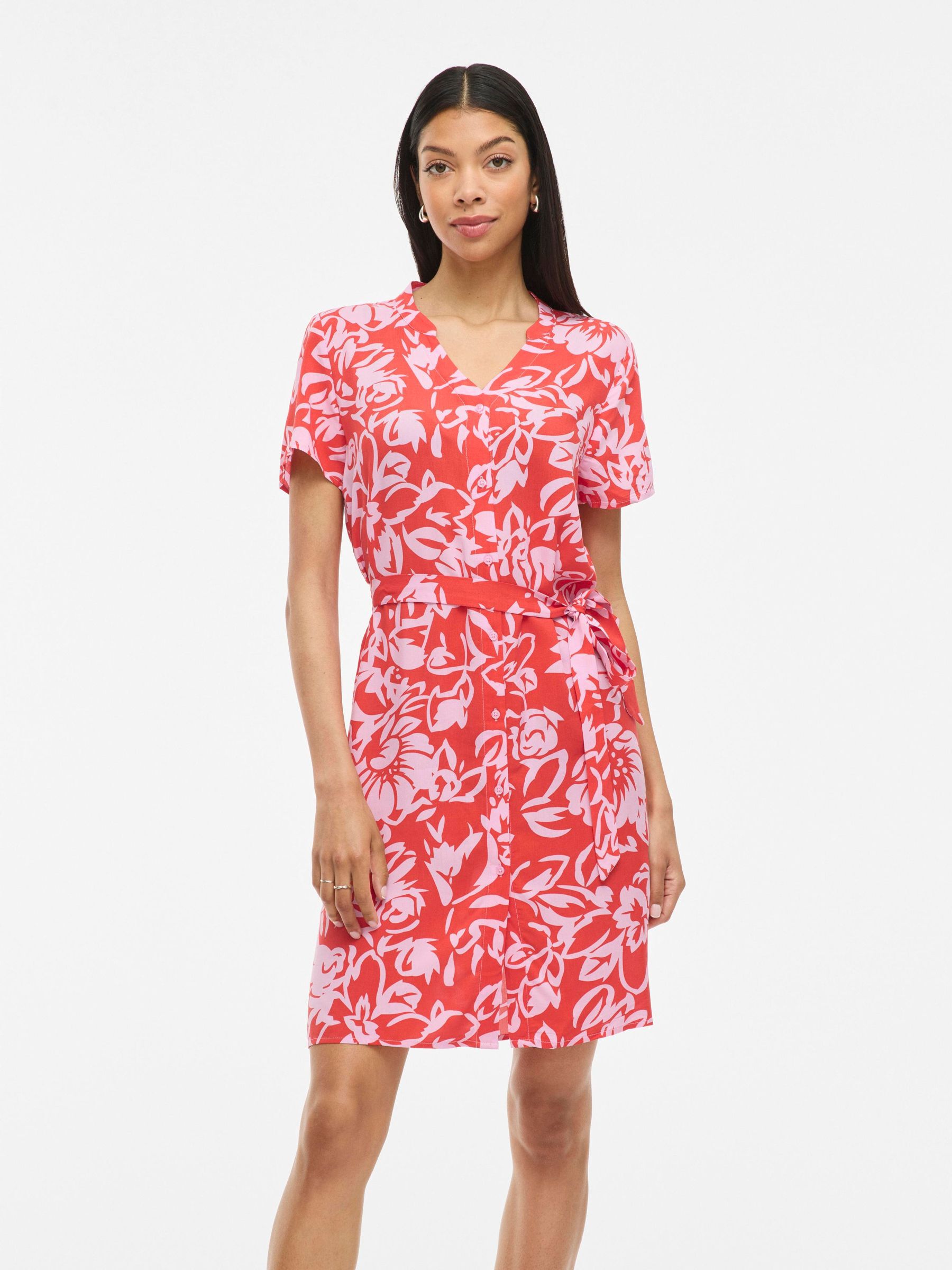 • Short sleeved shirt dress• Short-length• Button up front• V-neck• Tie waist with removable belt• Light fabric• Regular fit• Length: 98 cm in size 38• Sleeve length: 18 cm in size 38