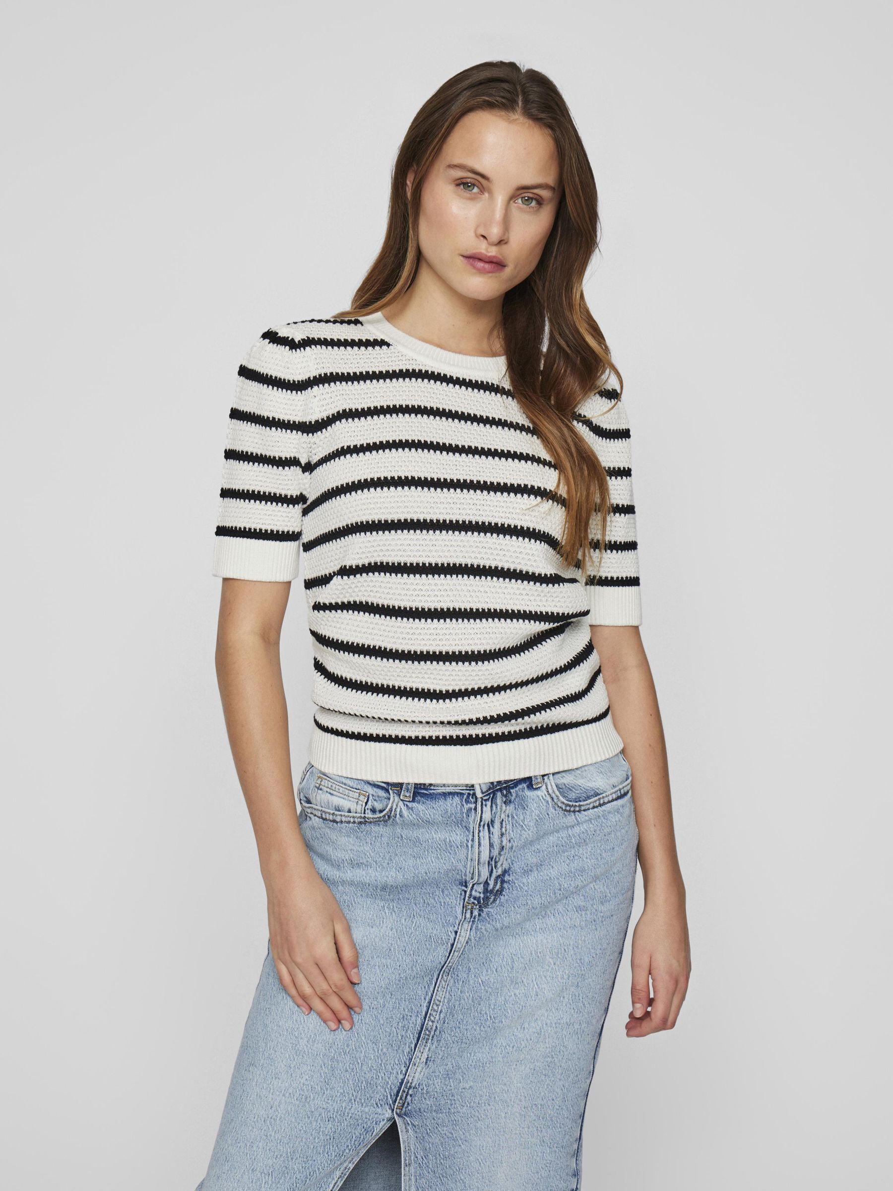 • Short sleeved knit top• Round neckline• Ribbed trims• Regular fit• Length: 58 cm in size M• Sleeve length: 30 cm in size M
