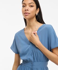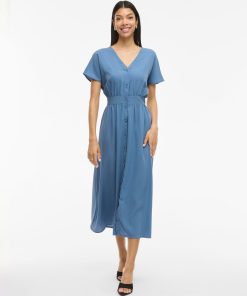 • Short sleeved midi dress• Button-up front• V-neck• Elastic on the back• Light fabric• Regular fit• Length: 131 cm in size 38• Sleeve length: 22 cm in size 38