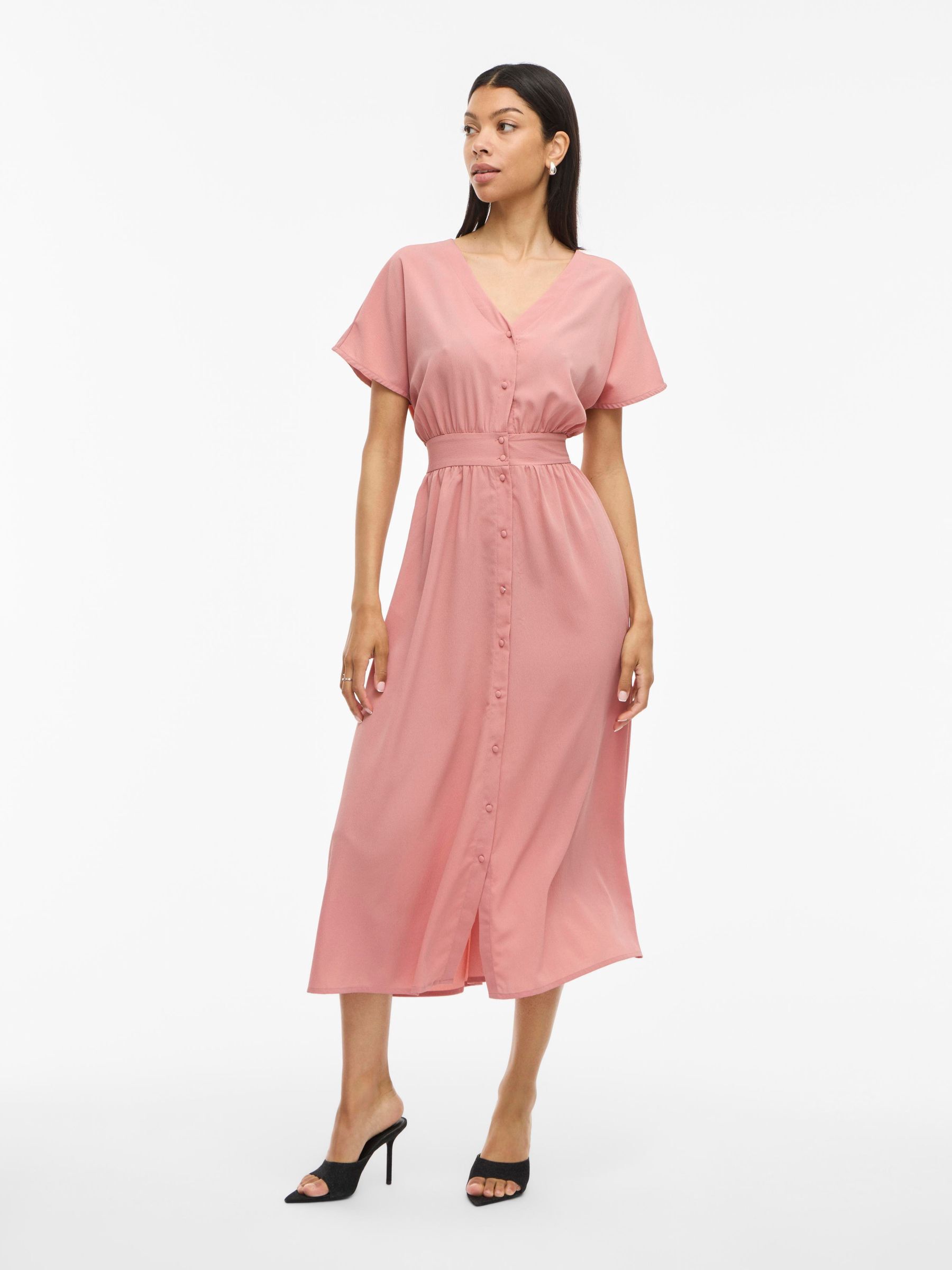 • Short sleeved midi dress• Button-up front• V-neck• Elastic on the back• Light fabric• Regular fit• Length: 131 cm in size 38• Sleeve length: 22 cm in size 38