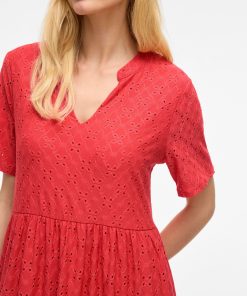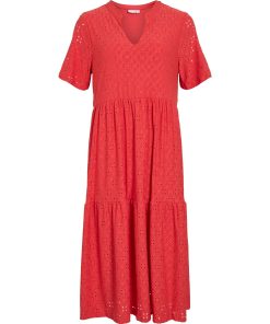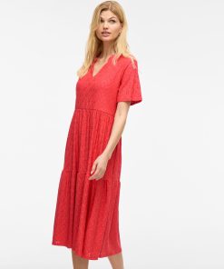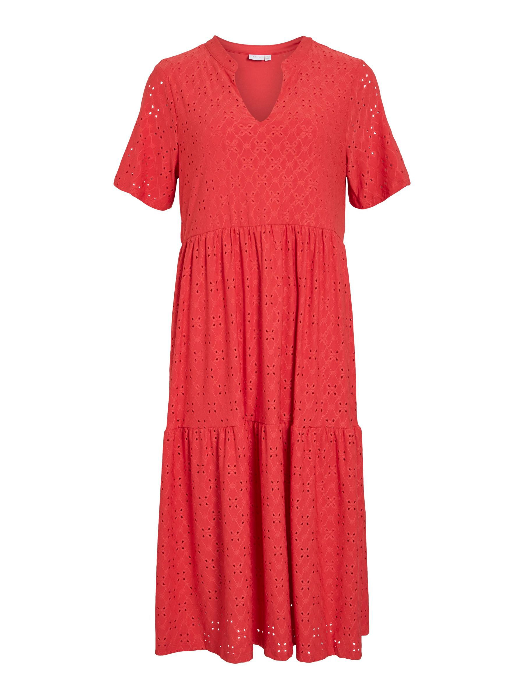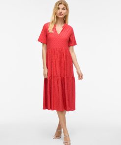 VILA Women’s Short Sleeved Midi Dress | Poppy Red