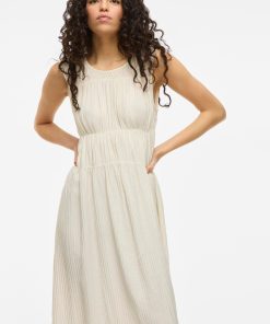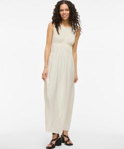 • Sleeveless maxi dress• Round neck• Elastic cutline at waist• Textured fabric• Regular fit• Length: 60 cm in size 38