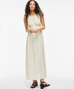 • Sleeveless maxi dress• Round neck• Elastic cutline at waist• Textured fabric• Regular fit• Length: 60 cm in size 38