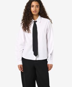 – Shirt with added neck tie detail- Regular collar- Dropped shoulders- Long sleeves with small NM logo embroidery detail- Buttoned cuffs- Button-up front- Relaxed fit